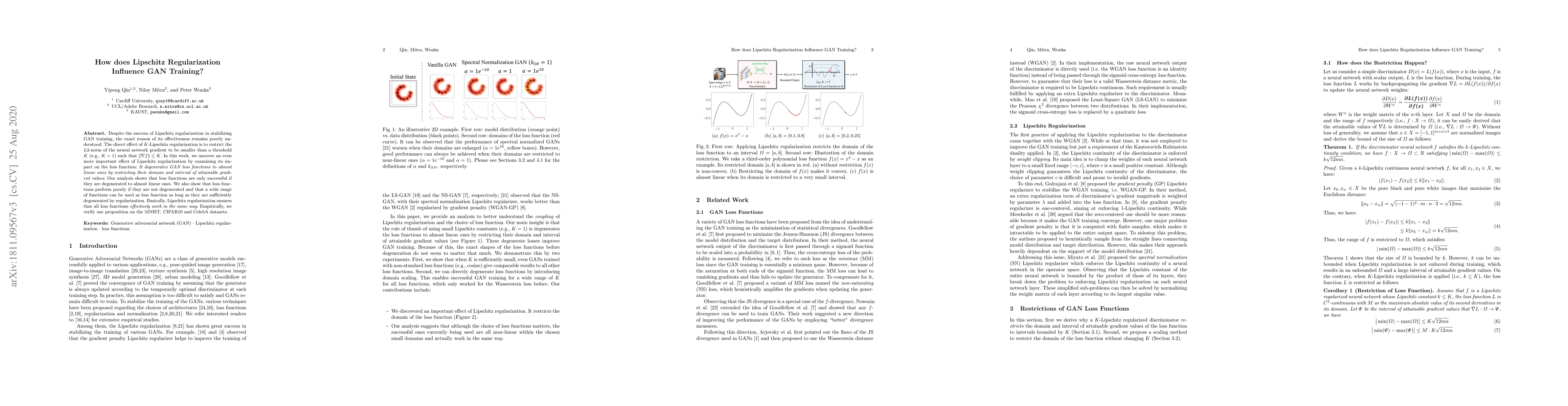 Despite the success of Lipschitz regularization in stabilizing GAN training, the exact reason of its effectiveness remains poorly understood. The direct effect of $K$-Lipschitz regularization is to restrict the $L2$-norm of the neural network gradient to be smaller than a threshold $K$ (e.g., $K=1$) such that $\|\nabla f\| \leq K$. In this work, we uncover an even more important effect of Lipschitz regularization by examining its impact on the loss function: It degenerates GAN loss functions to almost linear ones by restricting their domain and interval of attainable gradient values. Our analysis shows that loss functions are only successful if they are degenerated to almost linear ones. We also show that loss functions perform poorly if they are not degenerated and that a wide range of functions can be used as loss function as long as they are sufficiently degenerated by regularization. Basically, Lipschitz regularization ensures that all loss functions effectively work in the same way. Empirically, we verify our proposition on the MNIST, CIFAR10 and CelebA datasets.