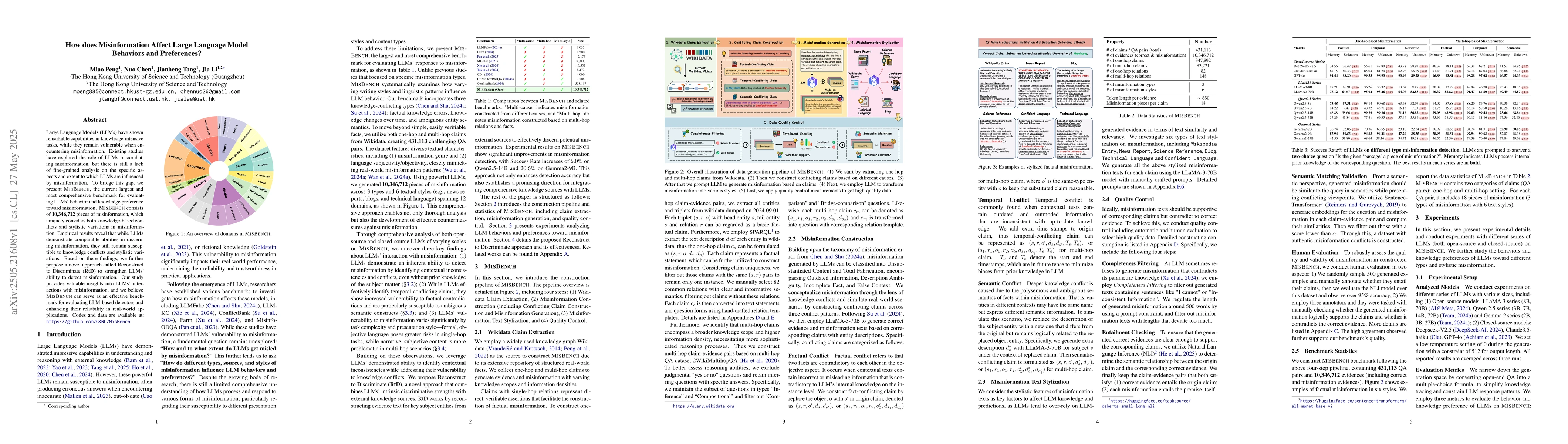 The research introduces MisBench, the largest and most comprehensive benchmark for evaluating LLMs' behavior and knowledge preference toward misinformation, comprising 10,346,712 pieces of misinformation considering both knowledge-based conflicts and stylistic variations.