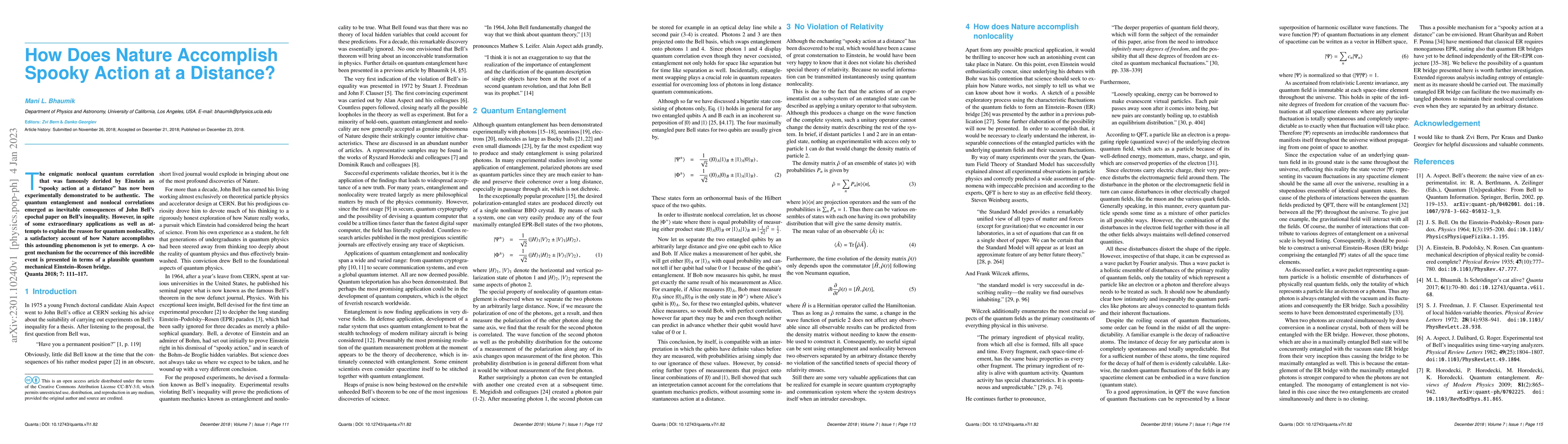 This paper explores the phenomenon of quantum entanglement, famously termed "spooky action at a distance" by Einstein, providing experimental evidence for its authenticity and proposing a quantum mechanical Einstein-Rosen bridge as a plausible mechanism for its occurrence. Despite significant applications and explanations, a comprehensive understanding of how Nature achieves this nonlocal correlation remains elusive.