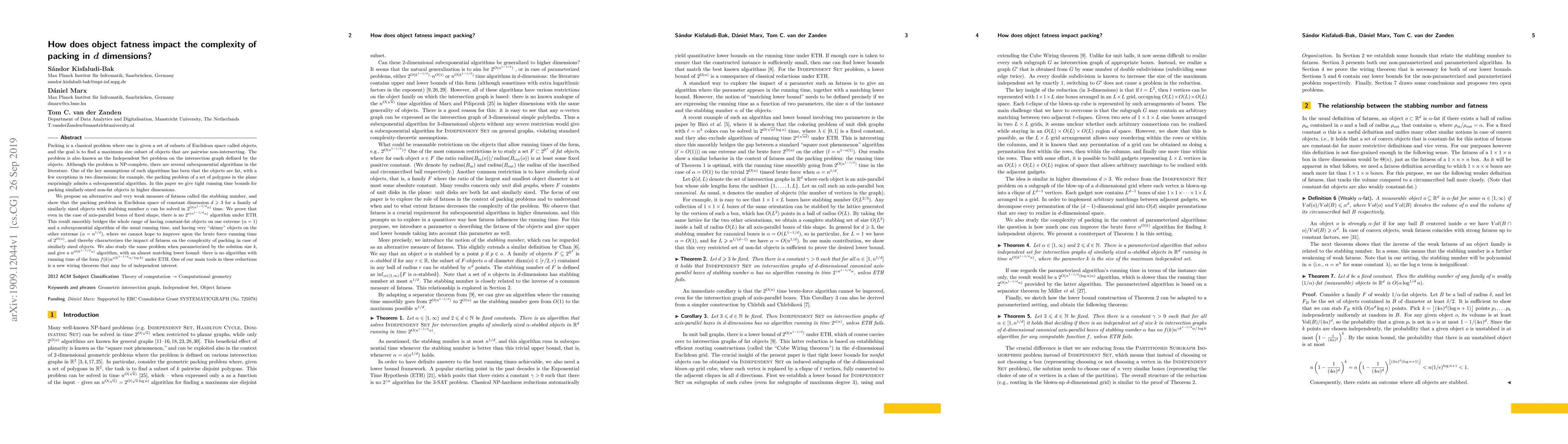 Researchers found that object fatness impacts packing complexity in higher dimensions, developing an algorithm to solve packing problems for similarly sized objects with a 'stabbing number' measure of fatness.