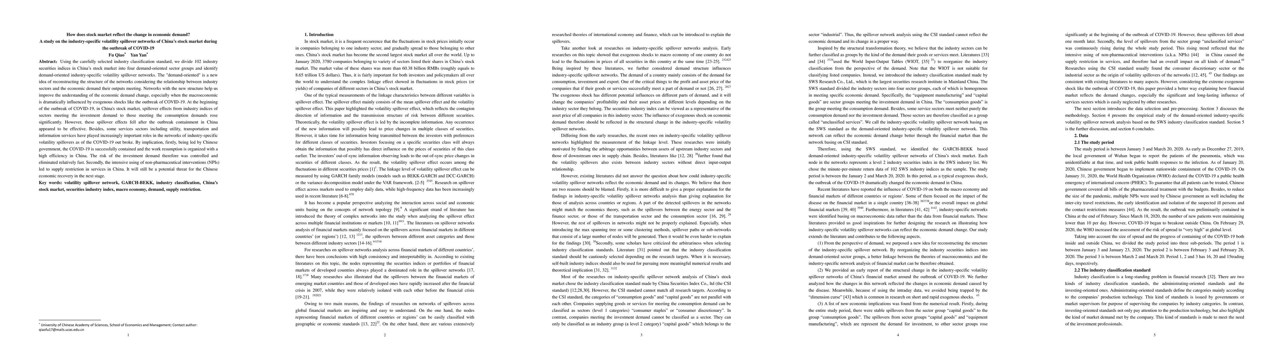 This study examines how China's stock market reflects changes in economic demand through industry-specific volatility spillover networks during the COVID-19 outbreak. The analysis reveals significant shifts in spillover effects from investment to consumption sectors initially, which later declined as containment measures took effect, highlighting the potential long-term impact of supply restrictions in service sectors on economic recovery.