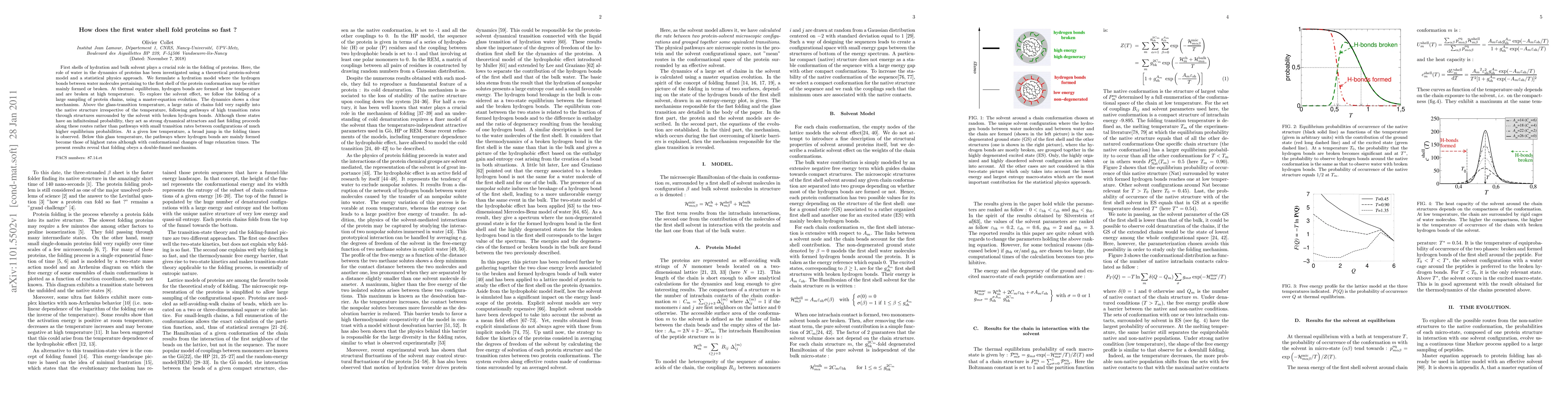 First shells of hydration and bulk solvent plays a crucial role in the folding of proteins. Here, the role of water in the dynamics of proteins has been investigated using a theoretical protein-solvent model and a statistical physics approach. We formulate a hydration model where the hydrogen bonds between water molecules pertaining to the first shell of the protein conformation may be either mainly formed or broken. At thermal equilibrium, hydrogen bonds are formed at low temperature and are broken at high temperature. To explore the solvent effect, we follow the folding of a large sampling of protein chains, using a master-equation evolution. The dynamics shows a clear mechanism. Above the glass-transition temperature, a large ratio of chains fold very rapidly into the native structure irrespective of the temperature, following pathways of high transition rates through structures surrounded by the solvent with broken hydrogen bonds. Although these states have an infinitesimal probability, they act as strong dynamical attractors and fast folding proceeds along these routes rather than pathways with small transition rates between configurations of much higher equilibrium probabilities. At a given low temperature, a broad jump in the folding times is observed. Below this glass temperature, the pathways where hydrogen bonds are mainly formed become those of highest rates although with conformational changes of huge relaxation times. The present results reveal that folding obeys a double-funnel mechanism.