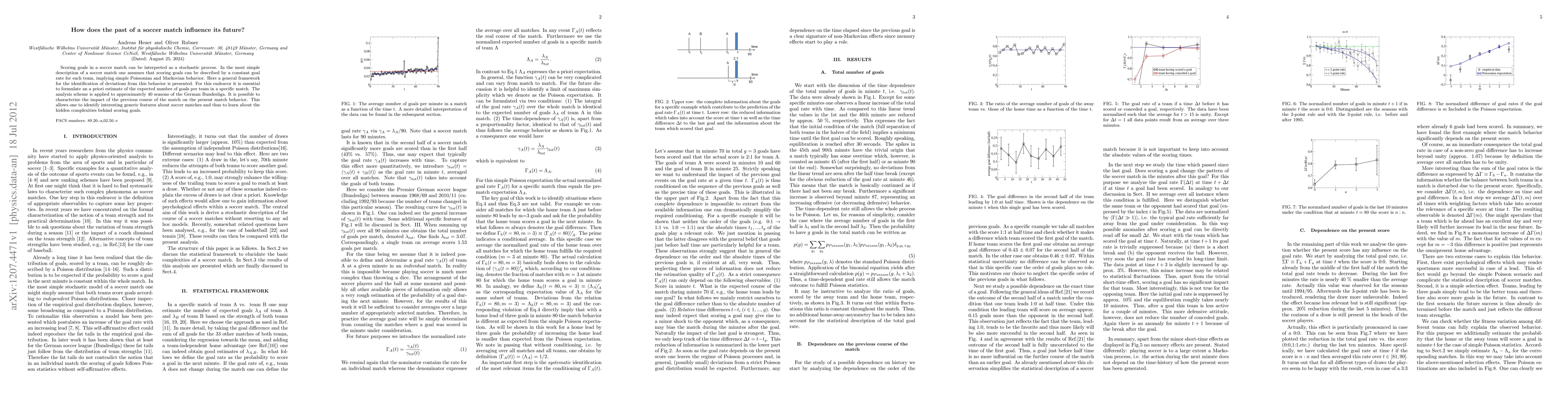 This paper investigates how past events in a soccer match influence future scoring, proposing a framework to identify deviations from simple Poissonian and Markovian behavior. The analysis of nearly 40 seasons of German Bundesliga data reveals the impact of previous match developments on current match behavior, uncovering hidden complexities in goal scoring.