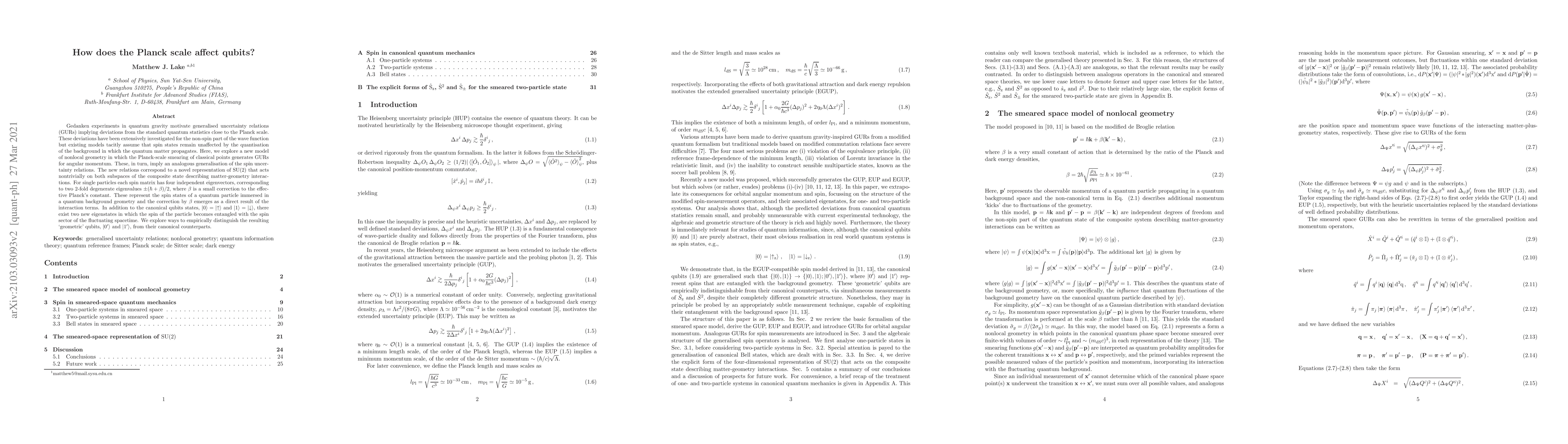 Gedanken experiments in quantum gravity motivate generalised uncertainty relations (GURs) implying deviations from the standard quantum statistics close to the Planck scale. These deviations have been extensively investigated for the non-spin part of the wave function but existing models tacitly assume that spin states remain unaffected by the quantisation of the background in which the quantum matter propagates. Here, we explore a new model of nonlocal geometry in which the Planck-scale smearing of classical points generates GURs for angular momentum. These, in turn, imply an analogous generalisation of the spin uncertainty relations. The new relations correspond to a novel representation of {\rm SU(2)} that acts nontrivially on both subspaces of the composite state describing matter-geometry interactions. For single particles each spin matrix has four independent eigenvectors, corresponding to two $2$-fold degenerate eigenvalues $\pm (\hbar + \beta)/2$, where $\beta$ is a small correction to the effective Planck's constant. These represent the spin states of a quantum particle immersed in a quantum background geometry and the correction by $\beta$ emerges as a direct result of the interaction terms. In addition to the canonical qubits states, $\ket{0} = \ket{\uparrow}$ and $\ket{1} = \ket{\downarrow}$, there exist two new eigenstates in which the spin of the particle becomes entangled with the spin sector of the fluctuating spacetime. We explore ways to empirically distinguish the resulting `geometric' qubits, $\ket{0'}$ and $\ket{1'}$, from their canonical counterparts.
