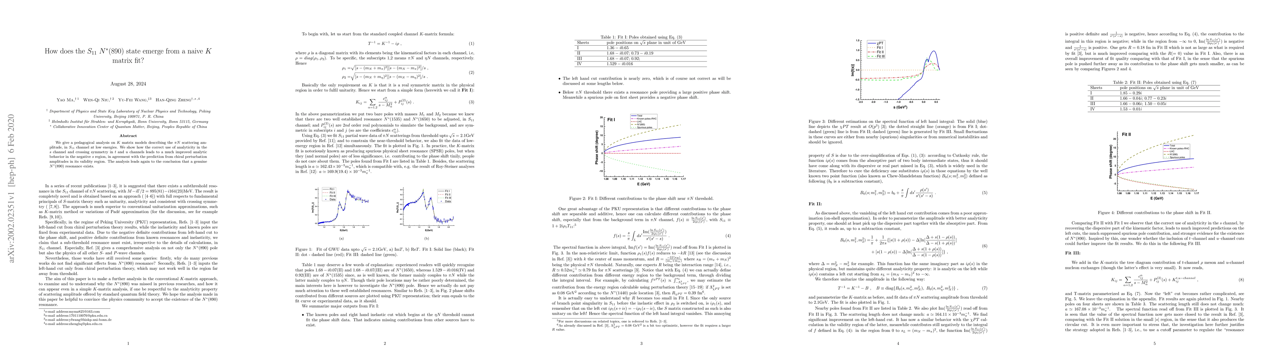 We give a pedagogical analysis on $K$ matrix models describing the $\pi N$ scattering amplitude, in $S_{11}$ channel at low energies. We show how the correct use of analyticity in the $s$ channel and crossing symmetry in $t$ and $u$ channels leads to a much improved analytic behavior in the negative $s$ region, in agreement with the prediction from chiral perturbation amplitudes in its validity region. The analysis leads again to the conclusion that a genuine $N^*(890)$ resonance exists.