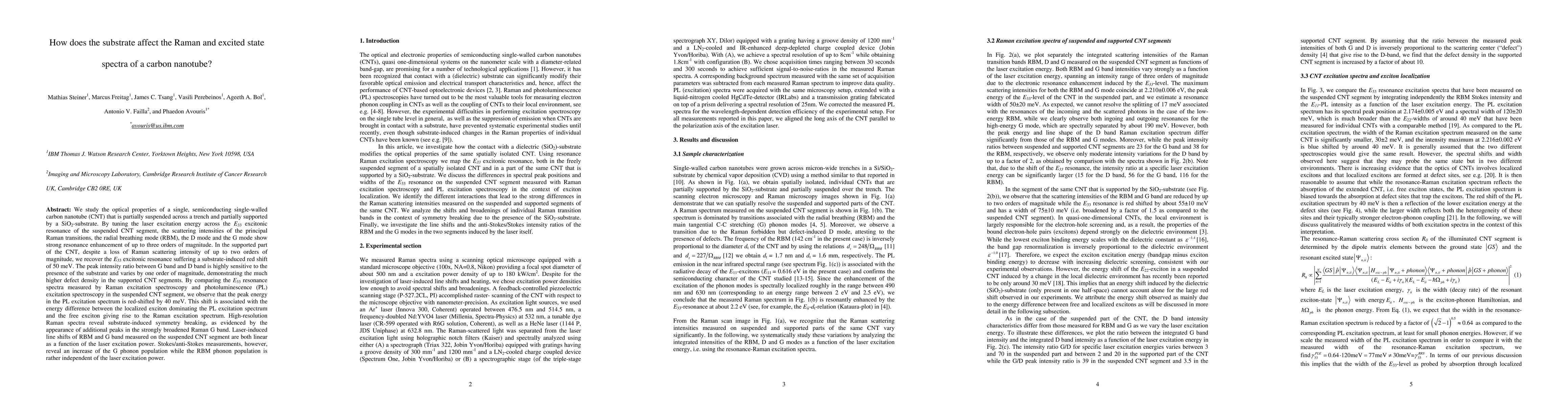 This research investigates the impact of a SiO2 substrate on the optical properties of a semiconducting single-walled carbon nanotube. Key findings include significant Raman scattering intensity enhancement in the suspended segment, a substrate-induced red shift in the E33 excitonic resonance, a higher defect density in supported CNT segments, and evidence of substrate-induced symmetry breaking in high-resolution Raman spectra.