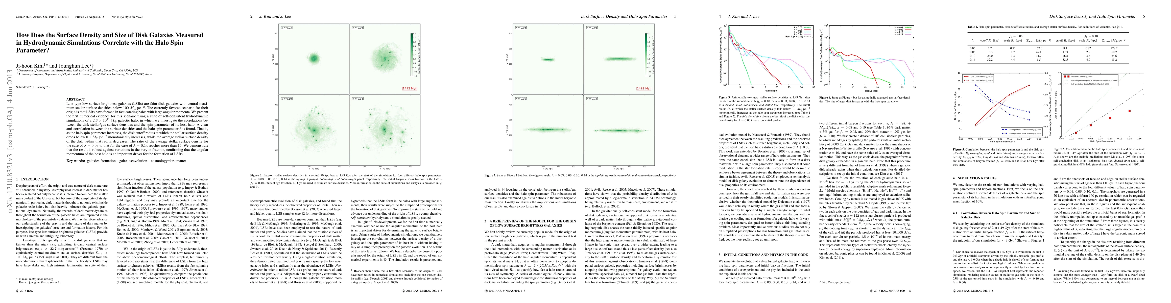 This study uses hydrodynamic simulations to show that low surface brightness galaxies (LSBs) correlate inversely with the spin parameter of their host halos. As halo spin increases, the cutoff radius for low surface density disks rises, and average surface density within this radius decreases significantly.