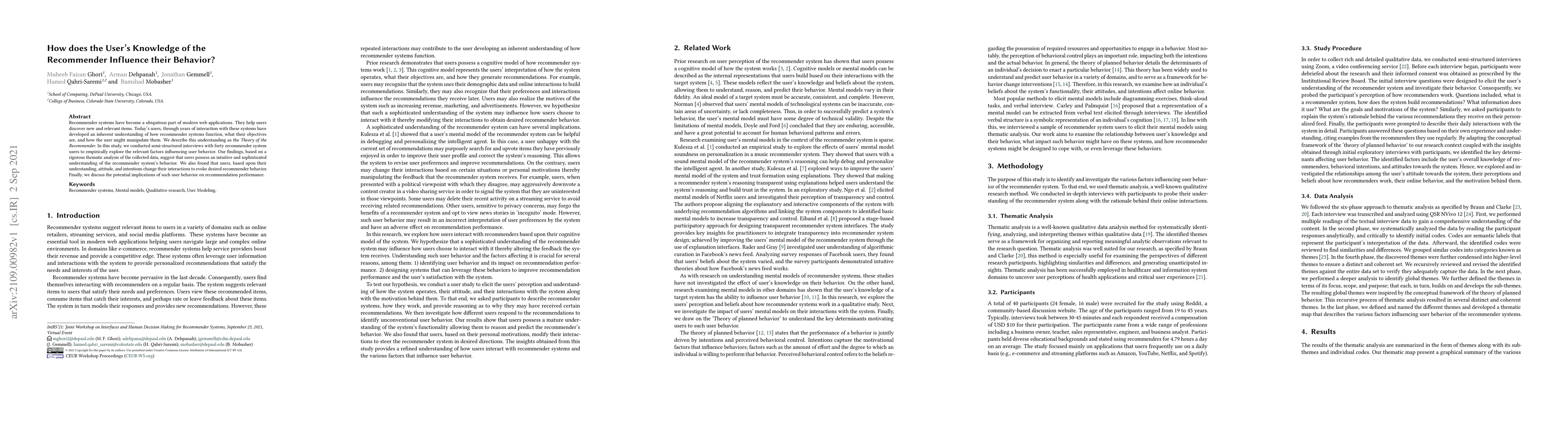 Recommender systems have become a ubiquitous part of modern web applications. They help users discover new and relevant items. Today's users, through years of interaction with these systems have developed an inherent understanding of how recommender systems function, what their objectives are, and how the user might manipulate them. We describe this understanding as the Theory of the Recommender. In this study, we conducted semi-structured interviews with forty recommender system users to empirically explore the relevant factors influencing user behavior. Our findings, based on a rigorous thematic analysis of the collected data, suggest that users possess an intuitive and sophisticated understanding of the recommender system's behavior. We also found that users, based upon their understanding, attitude, and intentions change their interactions to evoke desired recommender behavior. Finally, we discuss the potential implications of such user behavior on recommendation performance.