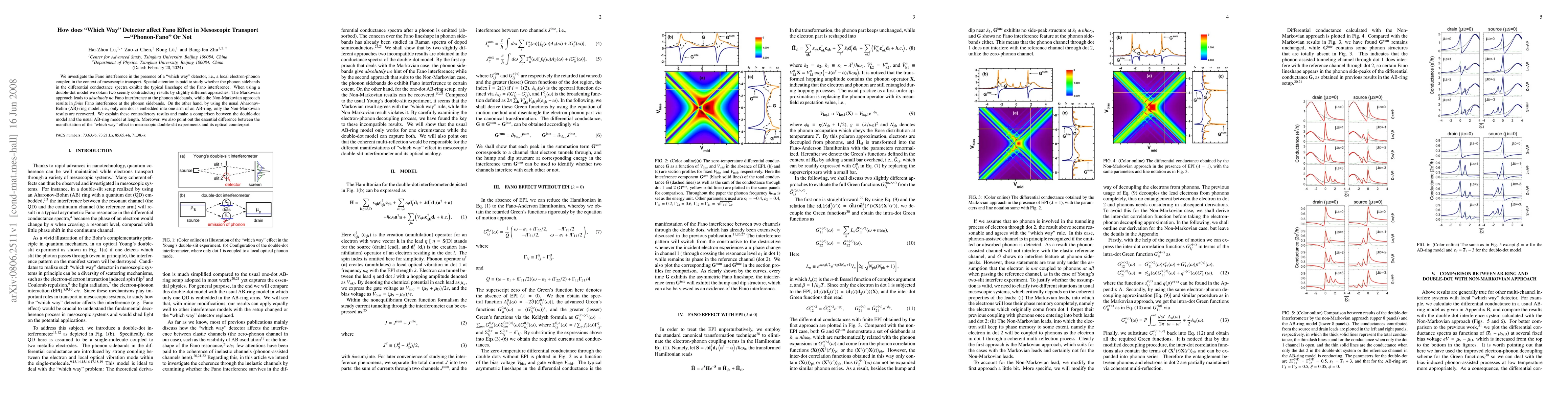 We investigate the Fano interference in the presence of a "which way" detector, i.e., a local electron-phonon coupler, in the context of mesoscopic transport. Special attention is paid to study whether the phonon sidebands in the differential conductance spectra exhibit the typical lineshape of the Fano interference. When using a double-dot model we obtain two seemly contradictory results by slightly different approaches: The Markovian approach leads to {\it absolutely no} Fano interference at the phonon sidebands, while the Non-Markovian approach results in {\it finite} Fano interference at the phonon sidebands. On the other hand, by using the usual Aharonov-Bohm (AB)-ring model, i.e., only one dot is embedded into one arm of an AB-ring, only the Non-Markovian results are recovered. We explain these contradictory results and make a comparison between the double-dot model and the usual AB-ring model at length. Moreover, we also point out the essential difference between the manifestation of the "which way" effect in mesoscopic double-slit experiments and its optical counterpart.