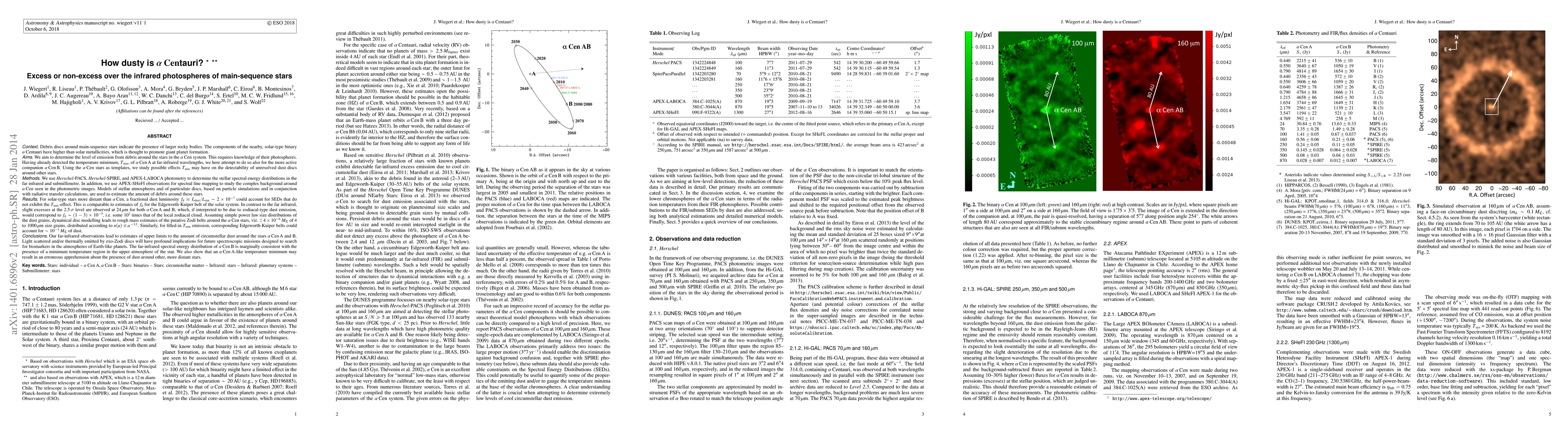 [Abridged] Debris discs around main-sequence stars indicate the presence of larger rocky bodies. The components of the nearby binary aCentauri have higher than solar metallicities, which is thought to promote giant planet formation. We aim to determine the level of emission from debris in the aCen system. Having already detected the temperature minimum, Tmin, of aCenA, we here attempt to do so also for the companion aCenB. Using the aCen stars as templates, we study possible effects Tmin may have on the detectability of unresolved dust discs around other stars. We use Herschel and APEX photometry to determine the stellar spectral energy distributions. In addition, we use APEX for spectral line mapping to study the complex background around aCen seen in the photometric images. Models of stellar atmospheres and discs are used to estimate the amount of debris around these stars. For solar-type stars, a fractional dust luminosity fd 2e-7 could account for SEDs that do not exhibit the Tmin-effect. Slight excesses at the 2.5 sigma level are observed at 24 mu for both stars, which, if interpreted to be due to dust, would correspond to fd (1-3)e-5. Dynamical disc modelling leads to rough mass estimates of the putative Zodi belts around the aCen stars, viz. <~4e-6 MMoon of 4 to 1000 mu size grains, distributed according to n a^-3.5. Similarly, for filled-in Tmin emission, corresponding EKBs could account for ~1e-3 MMoon of dust. Light scattered and/or thermally emitted by exo-Zodi discs will have profound implications for future spectroscopic missions designed to search for biomarkers in the atmospheres of Earth-like planets. The F-IR SED of aCenB is marginally consistent with the presence of a minimum temperature region in the upper atmosphere. We also show that an aCenA-like temperature minimum may result in an erroneous apprehension about the presence of dust around other stars.