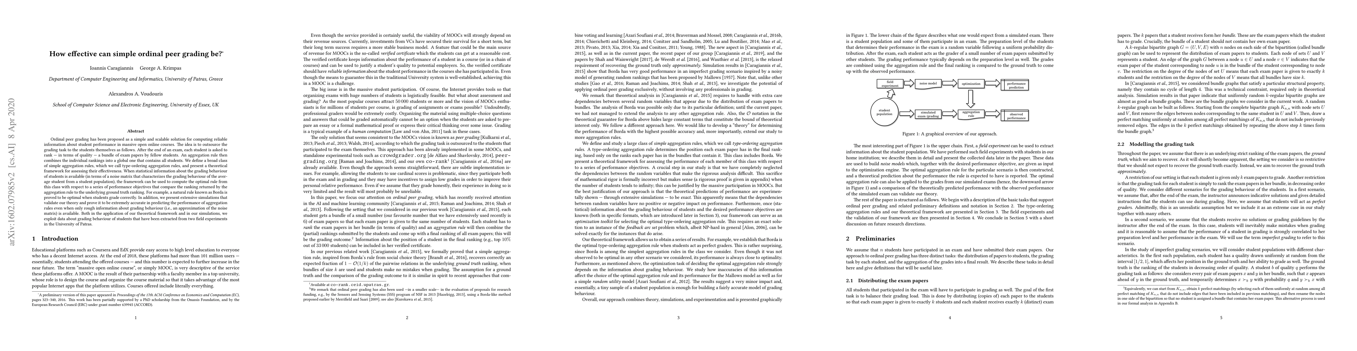 Simple ordinal peer grading can be effective in assessing student performance with high accuracy, even with limited information about individual students' grading behavior.