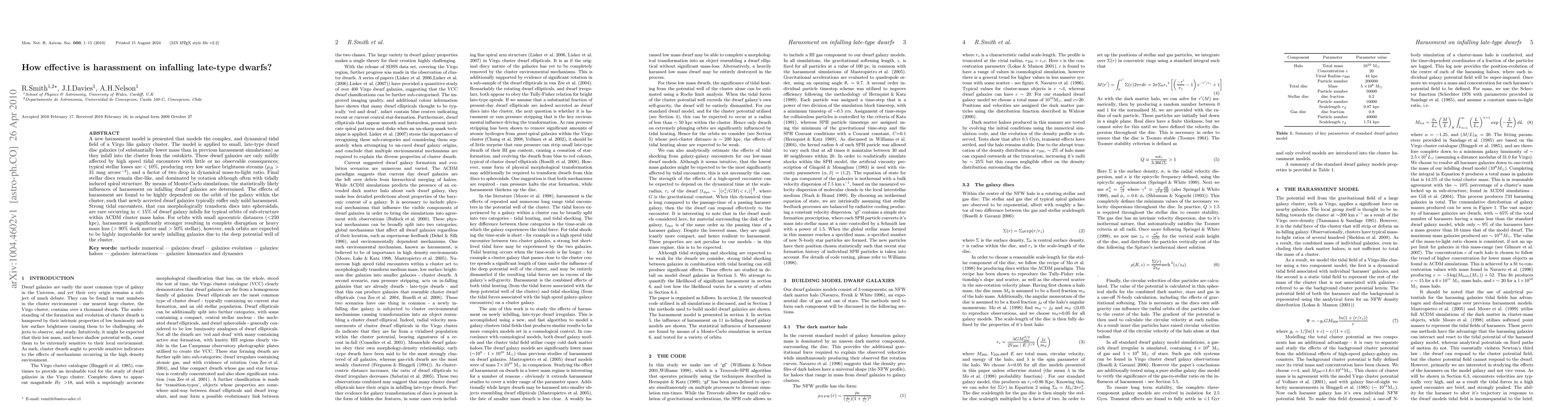 A new harassment model is presented that models the complex, and dynamical tidal field of a Virgo like galaxy cluster. The model is applied to small, late-type dwarf disc galaxies (of substantially lower mass than in previous harassment simulations) as they infall into the cluster from the outskirts. These dwarf galaxies are only mildly affected by high speed tidal encounters with little or no observable consequences; typical stellar losses are $<10\%$, producing very low surface brightness streams ($\mu_B > 31$ mag arcsec$^{-2}$), and a factor of two drop in dynamical mass-to-light ratio. Final stellar discs remain disc-like, and dominated by rotation although often with tidally induced spiral structure. By means of Monte-Carlo simulations, the statistically likely influences of harassment on infalling dwarf galaxies are determined. The effects of harassment are found to be highly dependent on the orbit of the galaxy within the cluster, such that newly accreted dwarf galaxies typically suffer only mild harassment. Strong tidal encounters, that can morphologically transform discs into spheroidals, are rare occurring in $<15 \%$ of dwarf galaxy infalls for typical orbits of sub-structure within $\Lambda$CDM cluster mass halos. For orbits with small apocentric distances ($<$250 kpc), harassment is significantly stronger resulting in complete disruption or heavy mass loss ($>90 \%$ dark matter and $> 50 \%$ stellar), however, such orbits are expected to be highly improbable for newly infalling galaxies due to the deep potential well of the cluster.