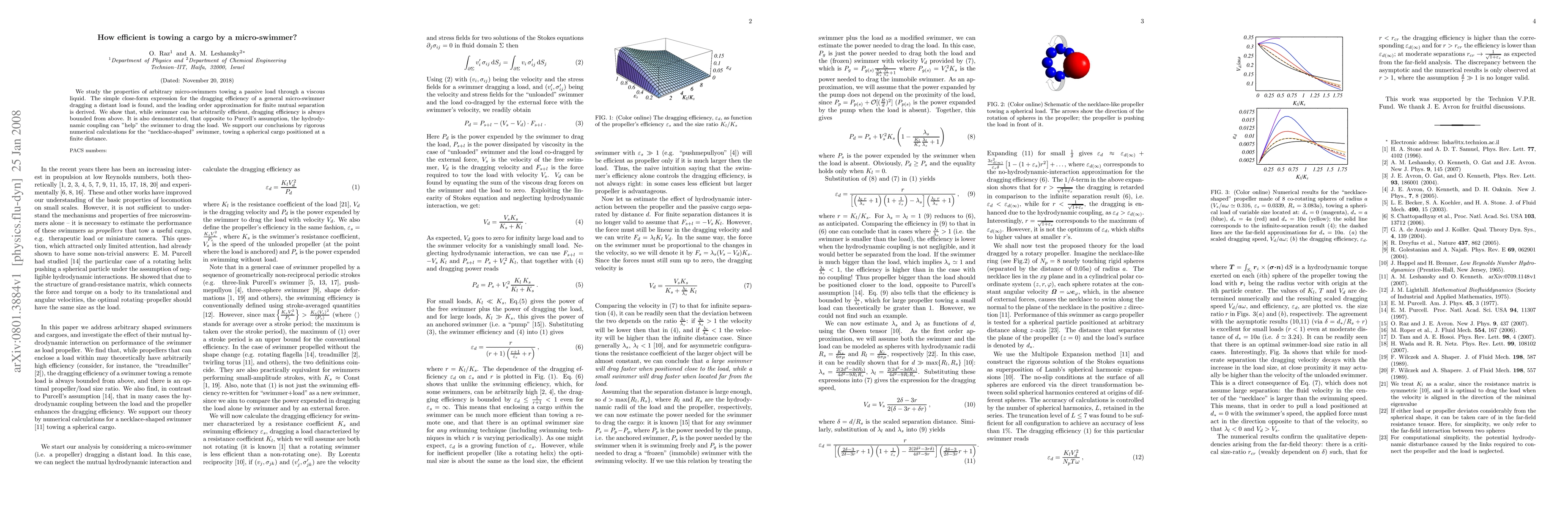 This paper investigates the efficiency of micro-swimmers towing passive loads through viscous liquids, deriving a simple expression for dragging efficiency and demonstrating that hydrodynamic coupling can enhance towing efficiency, contrary to Purcell's assumption. Numerical simulations for a "necklace-shaped" swimmer confirm these findings.