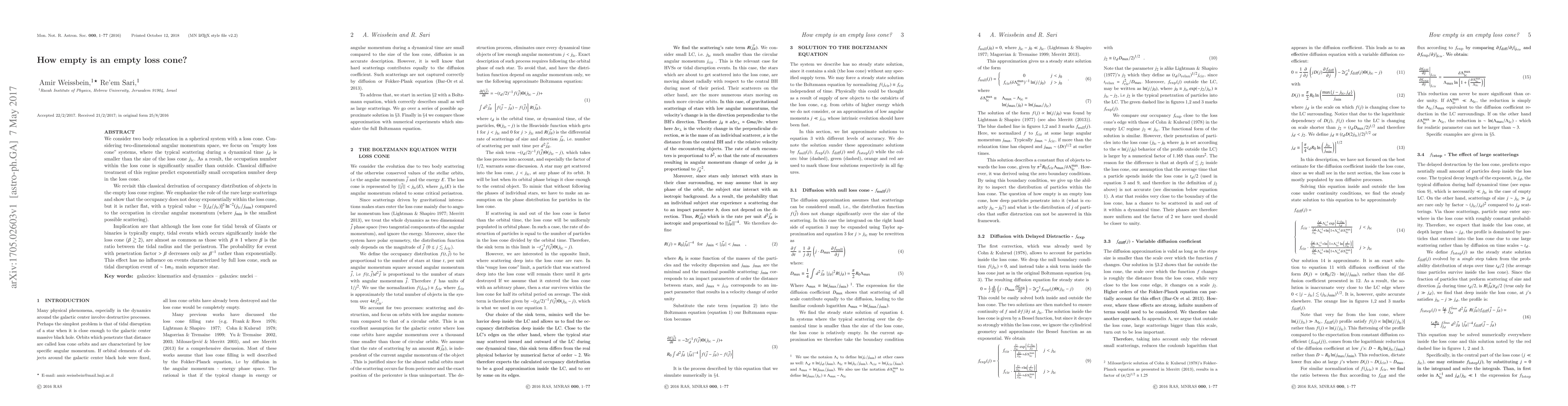 We consider two body relaxation in a spherical system with a loss cone. Considering two-dimensional angular momentum space, we focus on "empty loss cone" systems, where the typical scattering during a dynamical time $j_{d}$ is smaller than the size of the loss cone $j_{\rm lc}$. As a result, the occupation number within the loss cone is significantly smaller than outside. Classical diffusive treatment of this regime predict exponentially small occupation number deep in the loss cone. We revisit this classical derivation of occupancy distribution of objects in the empty loss cone regime. We emphasize the role of the rare large scatterings and show that the occupancy does not decay exponentially within the loss cone, but it is rather flat, with a typical value $\sim [(j_d/j_{\rm lc})]^2\ln^{-2}(j_{\rm lc}/j_{\min})$ compared to the occupation in circular angular momentum (where $j_{\min}$ is the smallest possible scattering). Implication are that although the loss cone for tidal break of Giants or binaries is typically empty, tidal events which occurs significantly inside the loss cone ($\beta\gtrsim 2$), are almost as common as those with $\beta\cong 1$ where $\beta$ is the ratio between the tidal radius and the periastron. The probability for event with penetration factor $>\beta$ decreases only as $\beta^{-1}$ rather than exponentially. This effect has no influence on events characterized by full loss cone, such as tidal disruption event of $\sim 1m_\odot$ main sequence star.