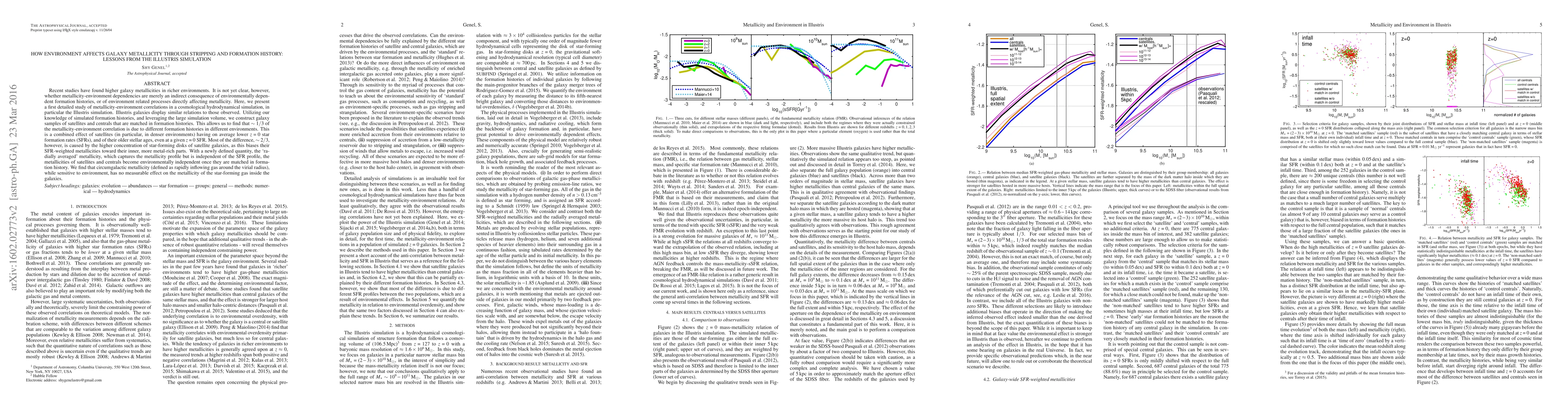 This study investigates the relationship between galaxy metallicity and environment using the Illustris simulation, finding that ~1/3 of the correlation is due to differing formation histories, while ~2/3 is caused by the higher concentration of star-forming disks in satellites, biasing their metallicities. Circumgalactic metallicity has no significant impact on the star-forming gas inside galaxies.