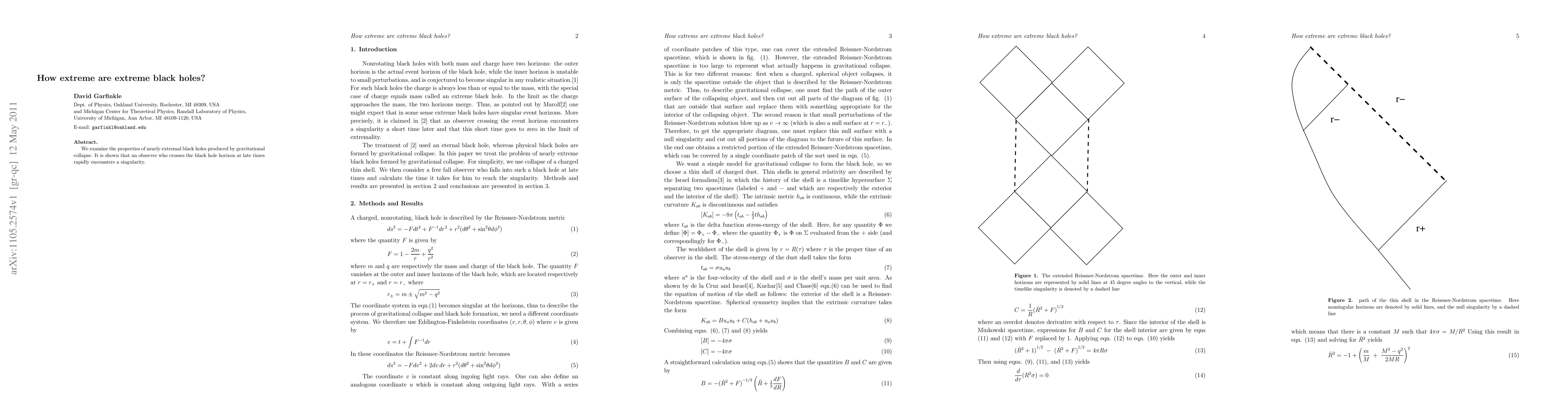 Summary: This paper investigates nearly extremal black holes formed through gravitational collapse, demonstrating that an observer crossing the horizon late in the process quickly reaches a singularity. The study highlights the extreme nature of such black holes.