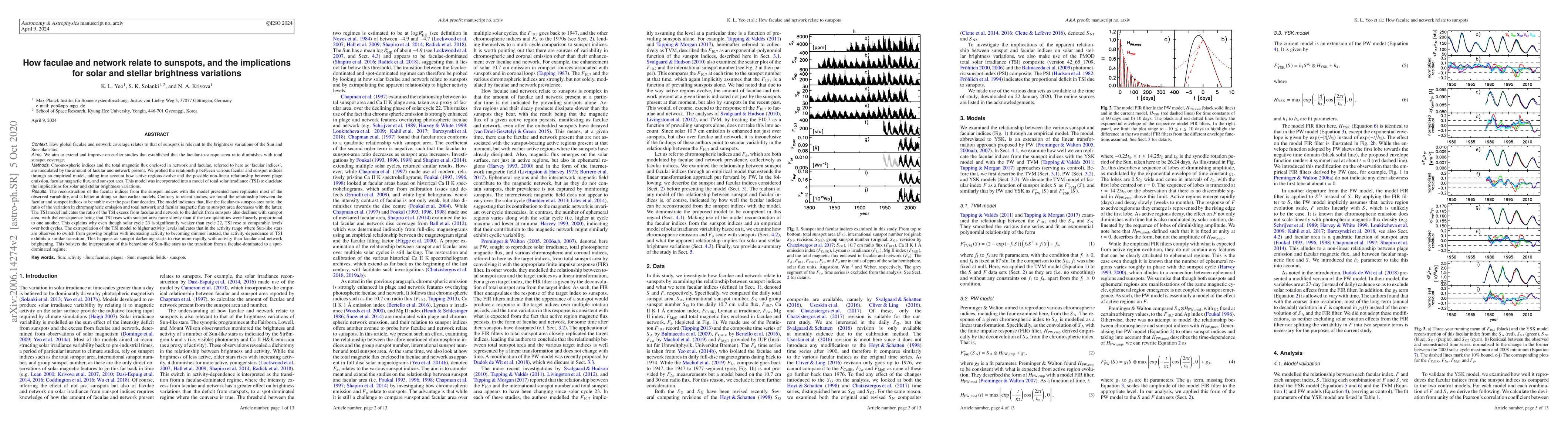 How global faculae and network coverage relates to that of sunspots is relevant to the brightness variations of the Sun and Sun-like stars. We extend earlier studies that found the facular-to-sunspot-area ratio diminishes with total sunspot coverage. Chromospheric indices and the total magnetic flux enclosed in network and faculae, referred to here as 'facular indices', are modulated by the amount of facular and network present. We probed the relationship between various facular and sunspot indices through an empirical model that takes into account how active regions evolve. This model was incorporated into a total solar irradiance (TSI) model. The model presented here replicates most of the observed variability in the facular indices, and is better at doing so than earlier models. Contrary to recent studies, we found the relationship between the facular and sunspot indices to be stable over the past four decades. The model indicates that, like the facular-to-sunspot-area ratio, the ratio of the variation in chromospheric emission and total network and facular magnetic flux to sunspot area decreases with the latter. The TSI model indicates the ratio of the TSI excess from faculae and network to the deficit from sunspots also declines with sunspot area, with the consequence being that TSI rises with sunspot area more slowly than if the two quantities were linearly proportional to one another. The extrapolation of the TSI model to higher activity levels indicates that in the activity range where Sun-like stars are observed to switch from growing brighter with increasing activity to becoming dimmer instead, the activity-dependence of TSI exhibits a similar transition as sunspot darkening starts to rise more rapidly with activity than facular brightening. This bolsters the interpretation of this behavior of Sun-like stars as the transition from a faculae-dominated to a spot-dominated regime.