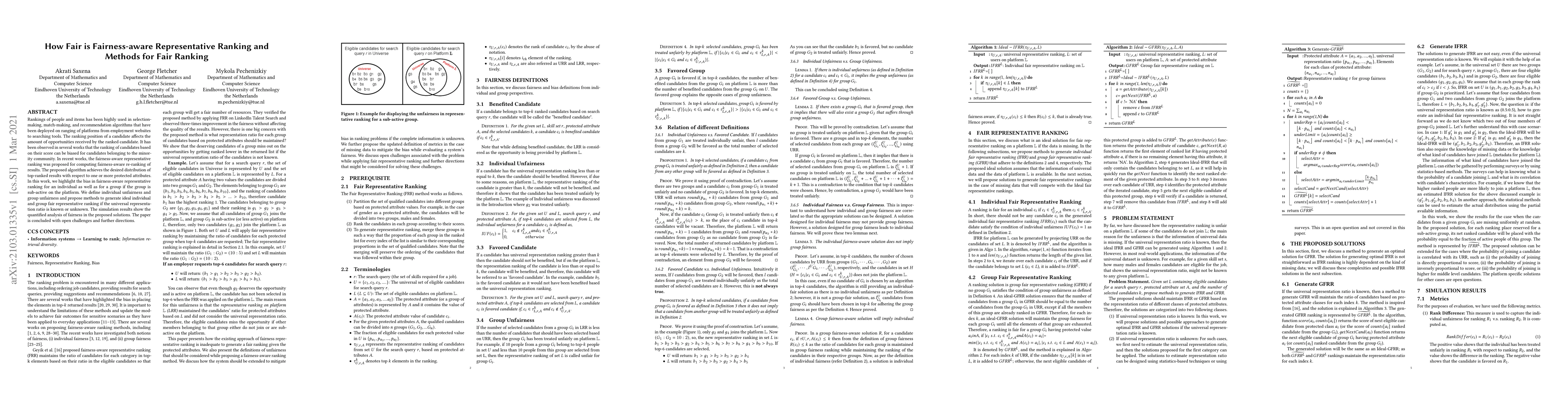 This research examines biases in fairness-aware representative ranking algorithms, identifying individual and group unfairness when minority groups are underrepresented. It proposes methods to mitigate these biases under known and unknown universal representation ratios, and provides a quantified analysis of fairness in simulations.
