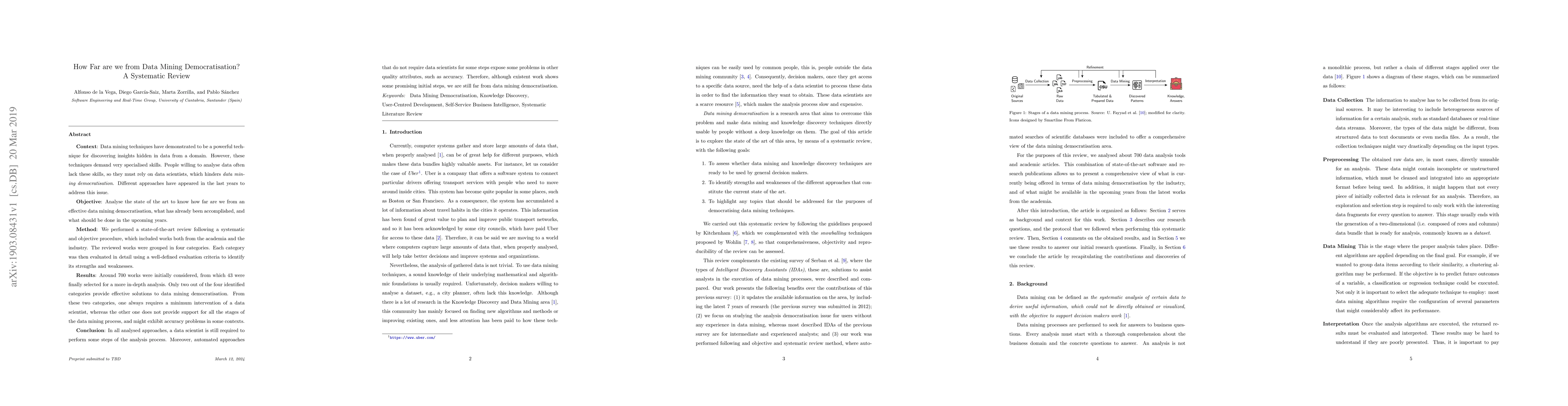 This paper systematically reviews approaches aimed at democratising data mining, finding that while some progress has been made, effective solutions still require data scientists or face accuracy issues. Despite initial promising steps, full democratisation remains elusive.