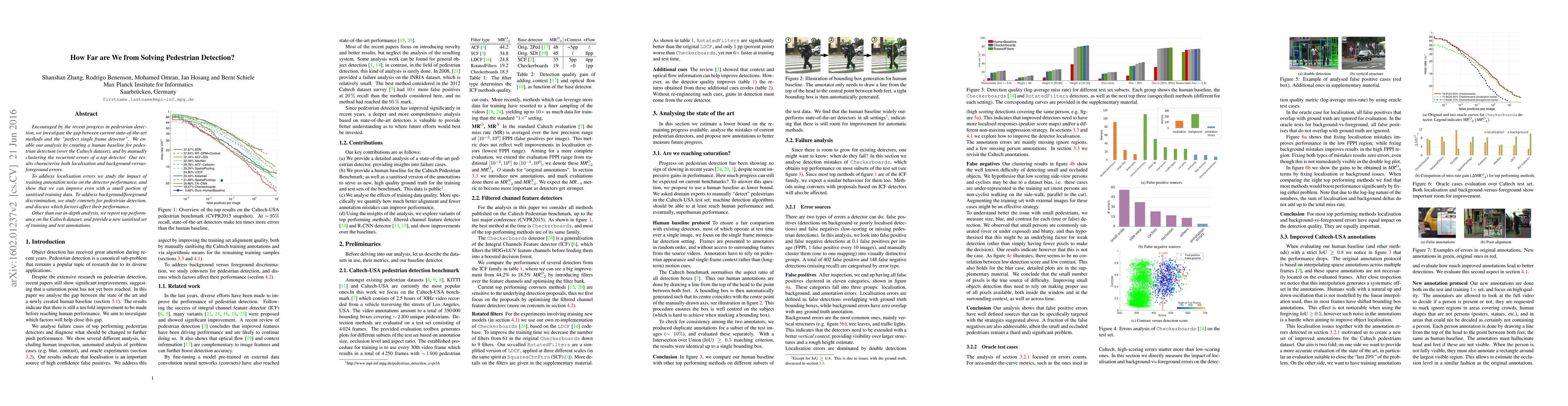 Researchers analyze gaps in pedestrian detection methods, identifying areas for improvement in both object localization and background/foreground distinction, and proposing ways to address these challenges.