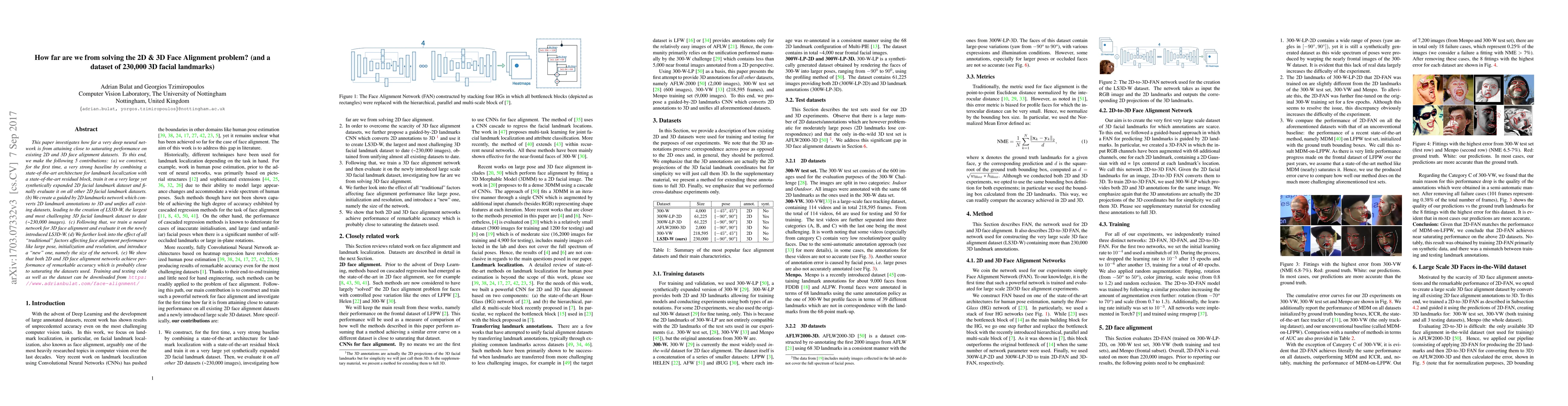 Researchers investigated how close deep neural networks are to solving the 2D & 3D face alignment problem using a new dataset of over 230,000 images, finding that they achieve remarkable accuracy that may be nearing the limits of current datasets.
