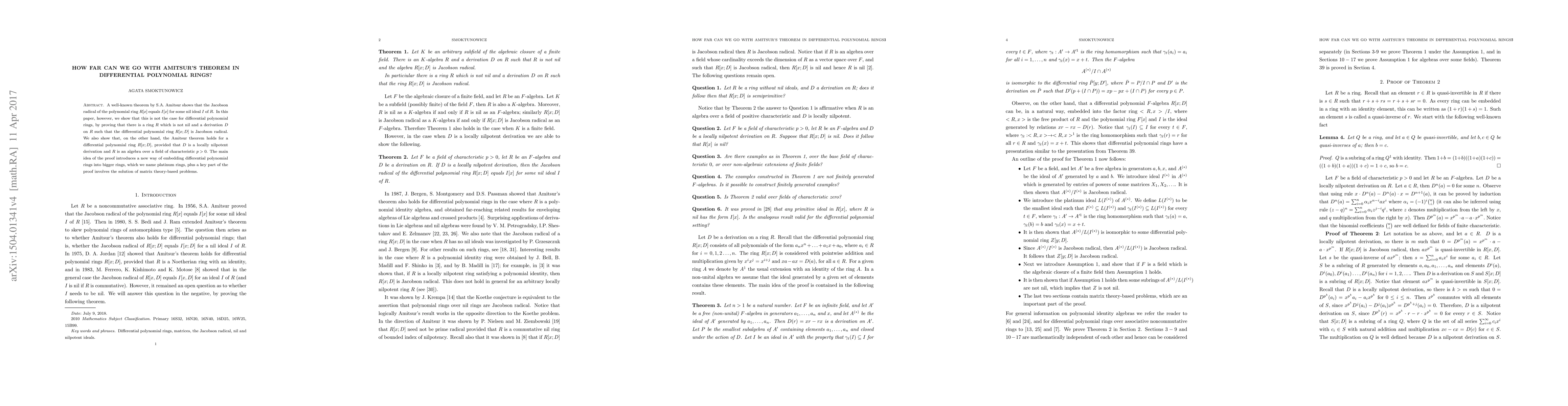 Researchers show that Amitsur's theorem does not hold for differential polynomial rings in general, but it holds under specific conditions, such as locally nilpotent derivations and fields of characteristic p>0.