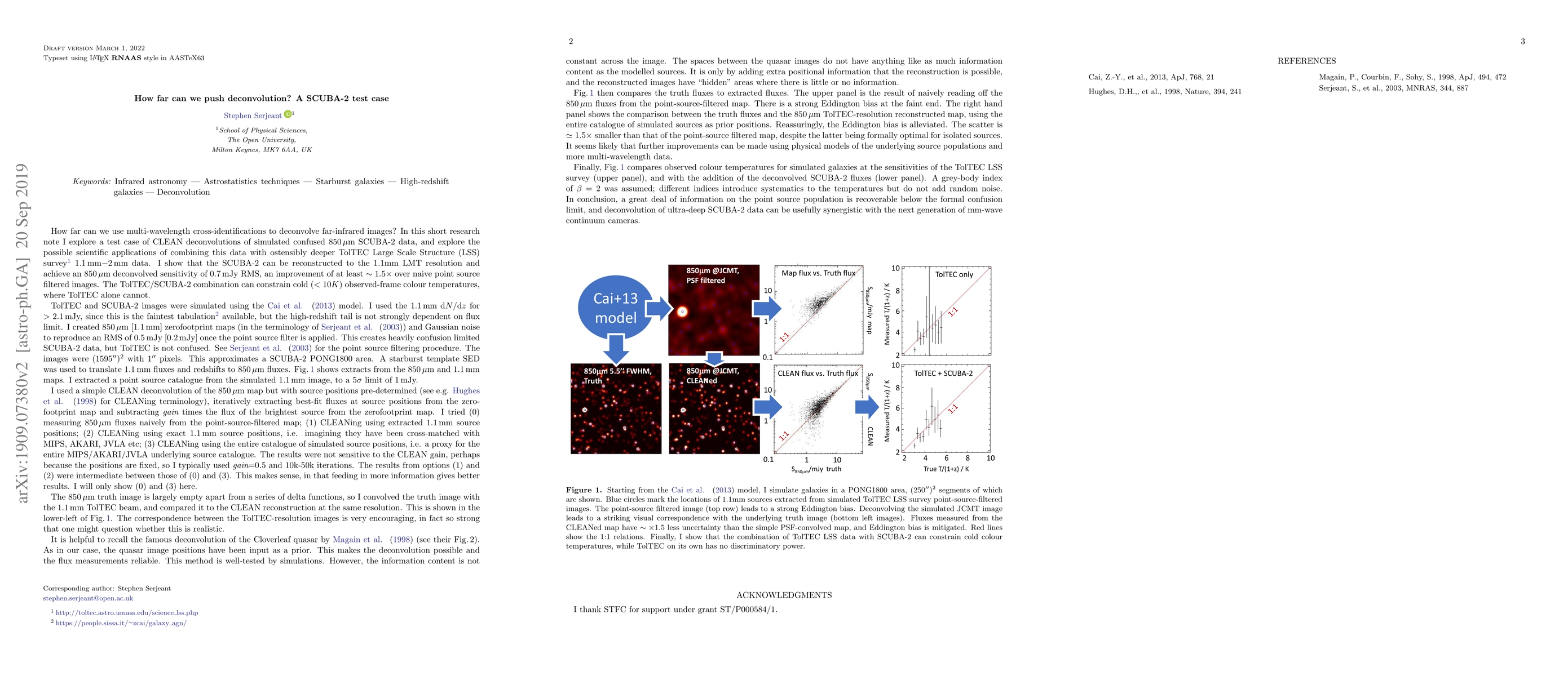 How far can we use multi-wavelength cross-identifications to deconvolve far-infrared images? In this short research note I explore a test case of CLEAN deconvolutions of simulated confused 850 micron SCUBA-2 data, and explore the possible scientific applications of combining this data with ostensibly deeper TolTEC Large Scale Structure (LSS) survey 1.1mm-2mm data. I show that the SCUBA-2 can be reconstructed to the 1.1mm LMT resolution and achieve an 850 micron deconvolved sensitivity of 0.7 mJy RMS, an improvement of at least ~1:5x over naive point source filtered images. The TolTEC/SCUBA-2 combination can constrain cold (<10K) observed-frame colour temperatures, where TolTEC alone cannot.