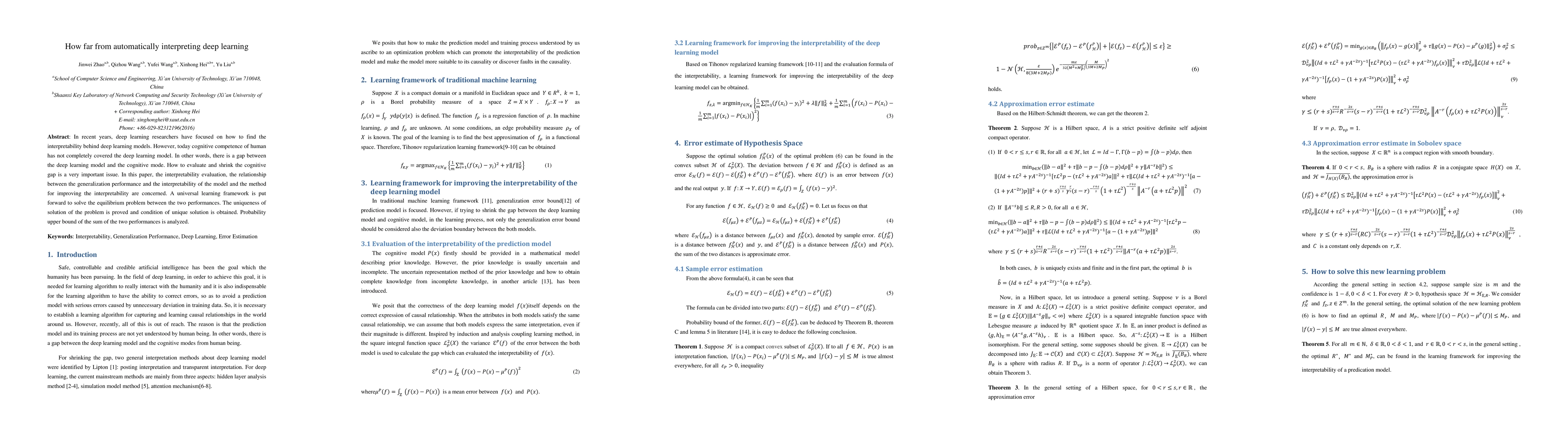 In recent years, deep learning researchers have focused on how to find the interpretability behind deep learning models. However, today cognitive competence of human has not completely covered the deep learning model. In other words, there is a gap between the deep learning model and the cognitive mode. How to evaluate and shrink the cognitive gap is a very important issue. In this paper, the interpretability evaluation, the relationship between the generalization performance and the interpretability of the model and the method for improving the interpretability are concerned. A universal learning framework is put forward to solve the equilibrium problem between the two performances. The uniqueness of solution of the problem is proved and condition of unique solution is obtained. Probability upper bound of the sum of the two performances is analyzed.
