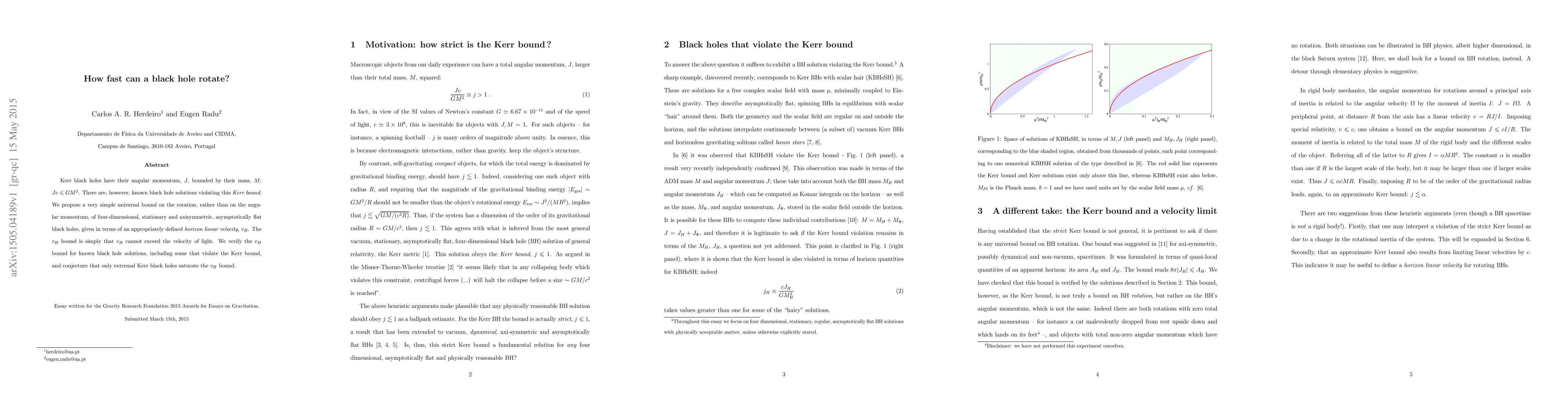 Researchers found a universal bound on black hole rotation speed, known as the horizon linear velocity ($v_H$) limit, which is set by the speed of light. This bound applies to four-dimensional, axisymmetric, and asymptotically flat black holes, including some that violate previous angular momentum limits.