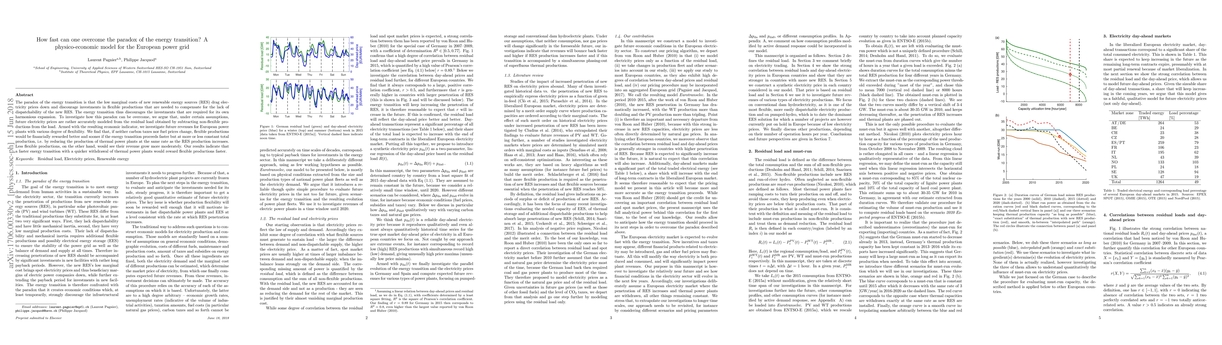 The paradox of the energy transition is that the low marginal costs of new renewable energy sources (RES) drag electricity prices down and discourage investments in flexible productions that are needed to compensate for the lack of dispatchability of the new RES. The energy transition thus discourages the investments that are required for its own harmonious expansion. To investigate how this paradox can be overcome, we argue that, under certain assumptions, future electricity prices are rather accurately modeled from the residual load obtained by subtracting non-flexible productions from the load. Armed with the resulting economic indicator, we investigate future revenues for European power plants with various degree of flexibility. We find that, if neither carbon taxes nor fuel prices change, flexible productions would be financially rewarded better and sooner if the energy transition proceeds faster but at more or less constant total production, i.e. by reducing the production of thermal power plants at the same rate as the RES production increases. Less flexible productions, on the other hand, would see their revenue grow more moderately. Our results indicate that a faster energy transition with a quicker withdrawal of thermal power plants would reward flexible productions faster.
