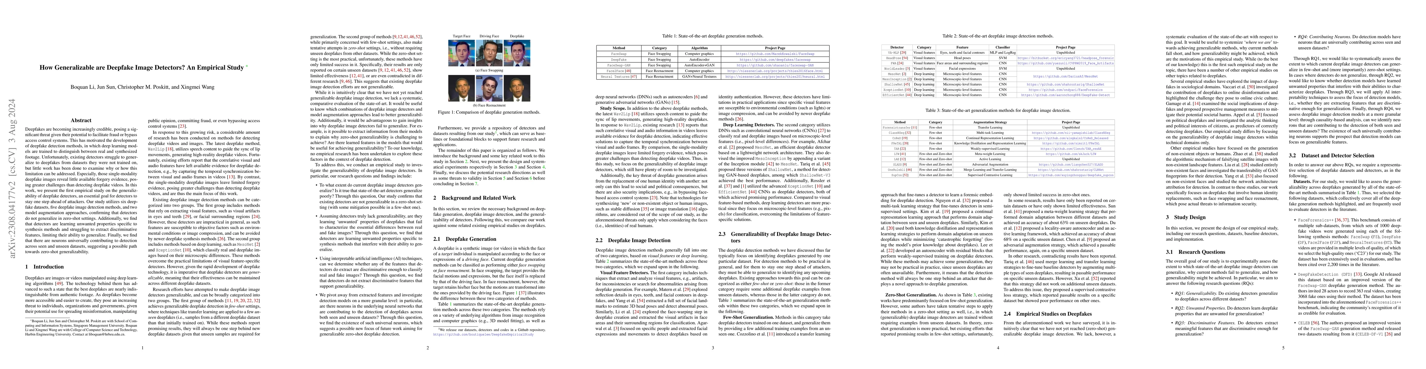 Deepfake videos and images are becoming increasingly credible, posing a significant threat given their potential to facilitate fraud or bypass access control systems. This has motivated the development of deepfake detection methods, in which deep learning models are trained to distinguish between real and synthesized footage. Unfortunately, existing detection models struggle to generalize to deepfakes from datasets they were not trained on, but little work has been done to examine why or how this limitation can be addressed. In this paper, we present the first empirical study on the generalizability of deepfake detectors, an essential goal for detectors to stay one step ahead of attackers. Our study utilizes six deepfake datasets, five deepfake detection methods, and two model augmentation approaches, confirming that detectors do not generalize in zero-shot settings. Additionally, we find that detectors are learning unwanted properties specific to synthesis methods and struggling to extract discriminative features, limiting their ability to generalize. Finally, we find that there are neurons universally contributing to detection across seen and unseen datasets, illuminating a possible path forward to zero-shot generalizability.
