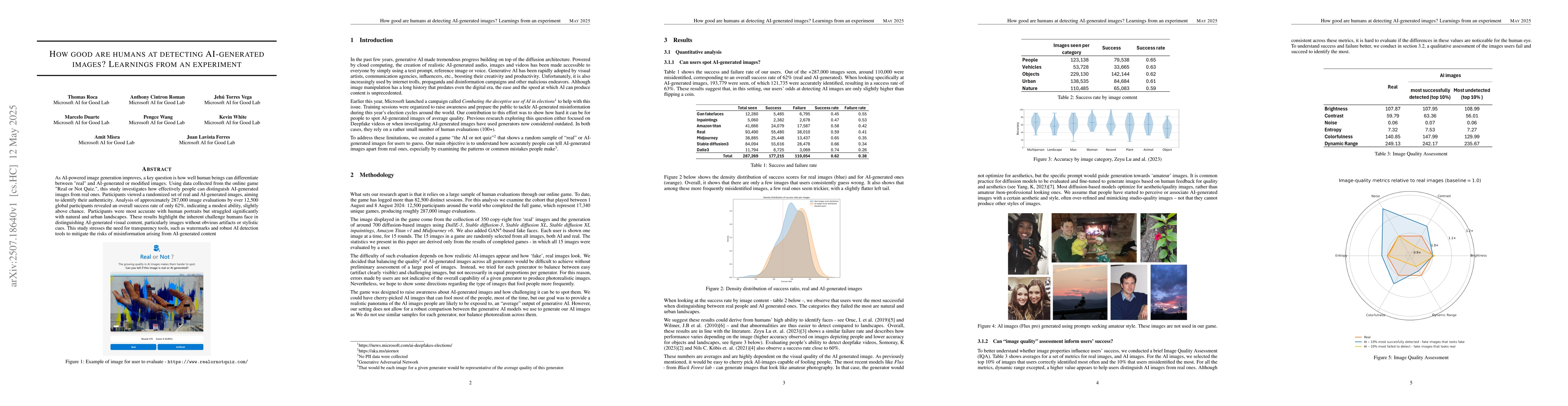 As AI-powered image generation improves, a key question is how well human beings can differentiate between "real" and AI-generated or modified images. Using data collected from the online game "Real or Not Quiz.", this study investigates how effectively people can distinguish AI-generated images from real ones. Participants viewed a randomized set of real and AI-generated images, aiming to identify their authenticity. Analysis of approximately 287,000 image evaluations by over 12,500 global participants revealed an overall success rate of only 62\%, indicating a modest ability, slightly above chance. Participants were most accurate with human portraits but struggled significantly with natural and urban landscapes. These results highlight the inherent challenge humans face in distinguishing AI-generated visual content, particularly images without obvious artifacts or stylistic cues. This study stresses the need for transparency tools, such as watermarks and robust AI detection tools to mitigate the risks of misinformation arising from AI-generated content