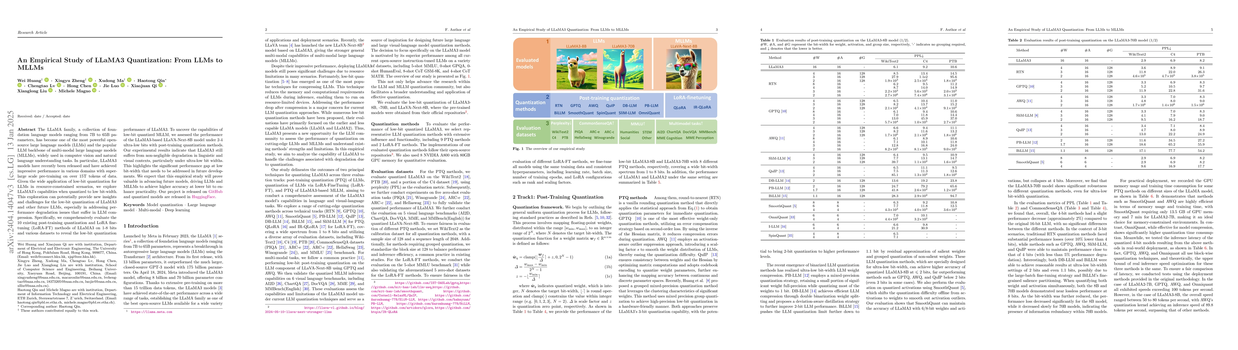 This study investigates the performance of low-bit quantized LLaMA3 models, revealing significant degradation, especially in ultra-low bit-width scenarios. Despite using various quantization and fine-tuning methods, the results underscore the challenges in compressing large language models while maintaining accuracy.