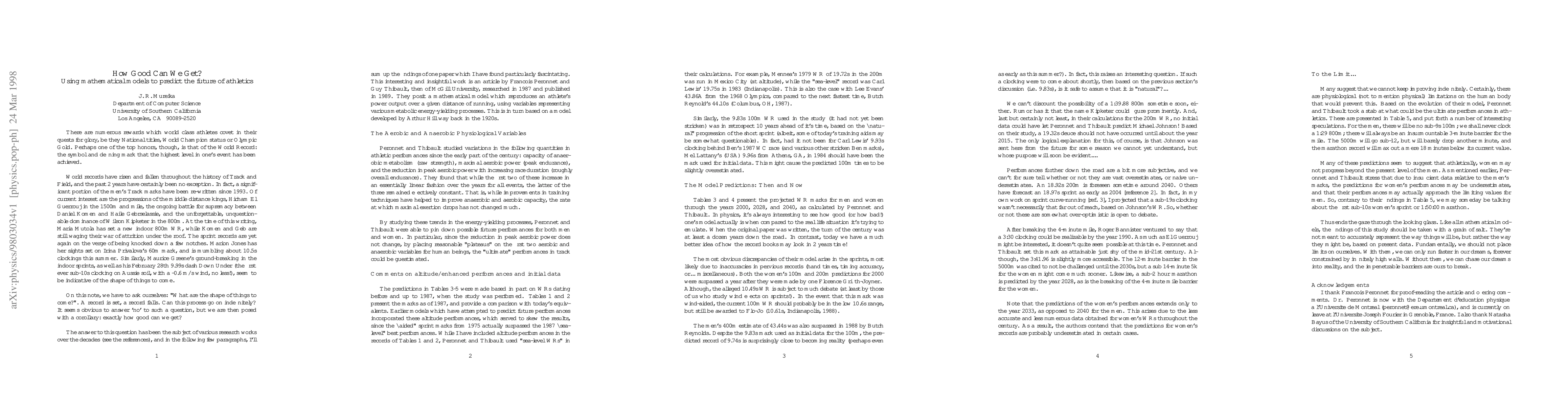 Track and field world records have risen and fallen throughout the history of the sport. A recent rash of record-breaking performances has prompted the question: "How good can we get?". This article offers a review of several attempts to answer this question, based on mathematical modeling of key physiological processes. The predictions are compared with present-day world records, and a discussion of the future of athletics ensues...