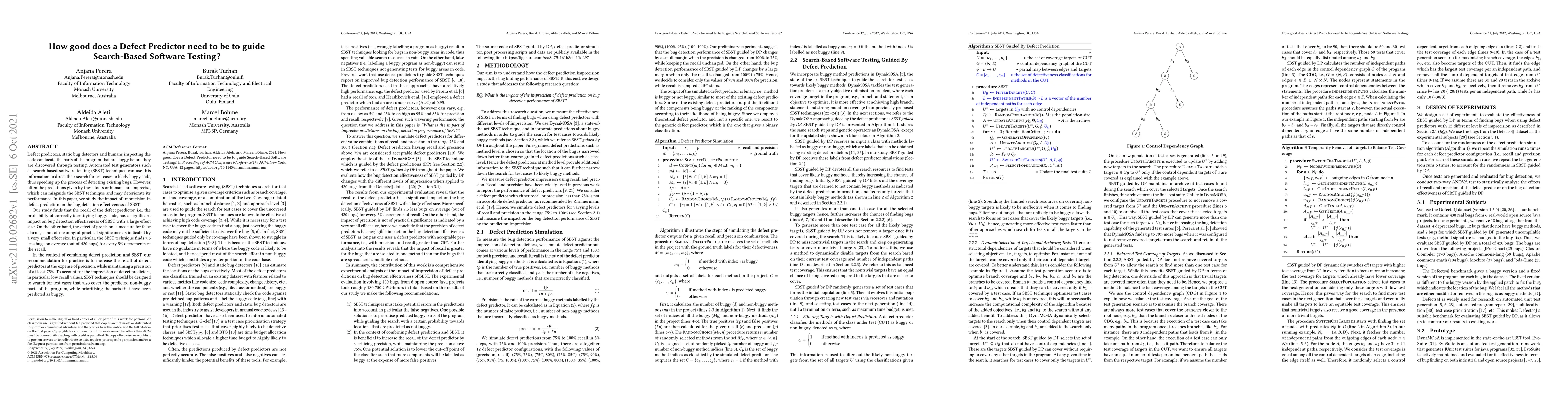 Defect predictors can significantly impact the effectiveness of search-based software testing. Increasing recall at the expense of precision is recommended to improve bug detection, with a minimum precision of 75% required.