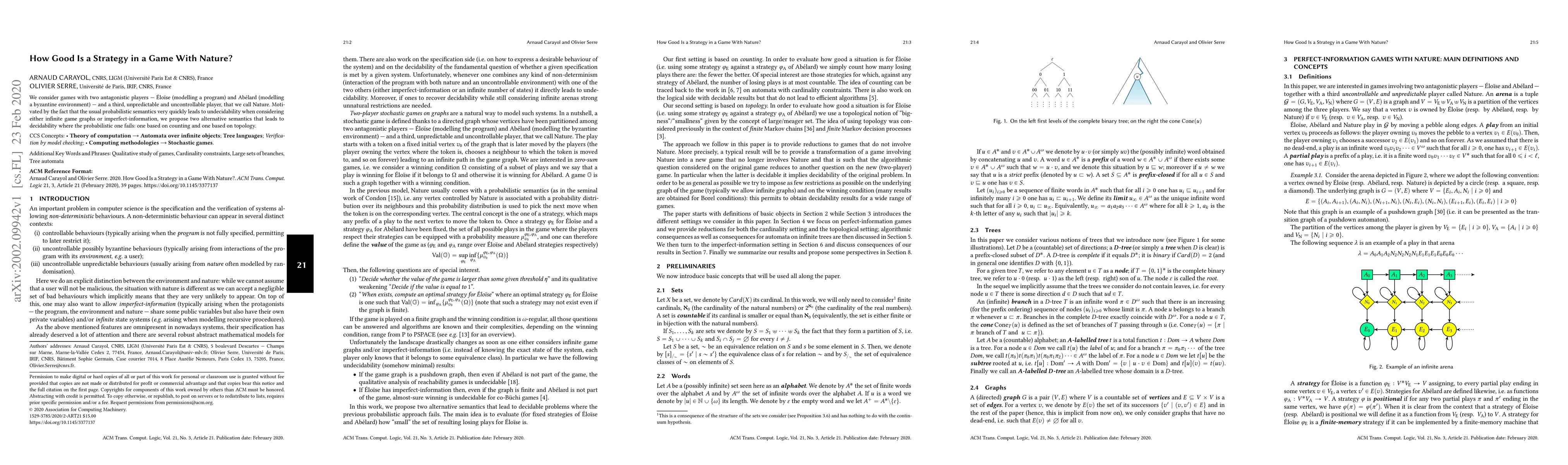 This research paper explores game theory with nature as a third unpredictable player, proposing two new semantics to achieve decidability in infinite game graphs and imperfect-information games.