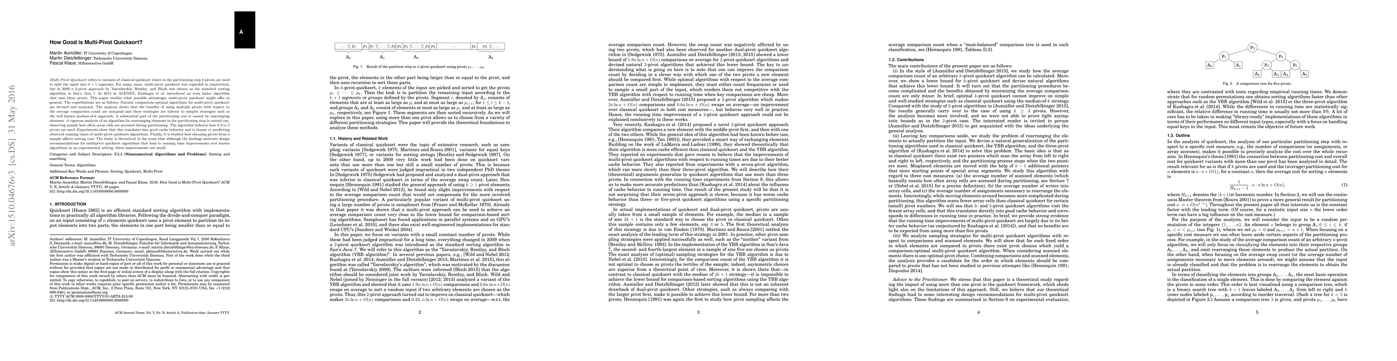 The paper analyzes multi-pivot quicksort algorithms, developing natural comparison-optimal algorithms and studying their advantages in terms of average comparison count and cache behavior. It also examines the impact of pivot sampling strategies on sorting cost.