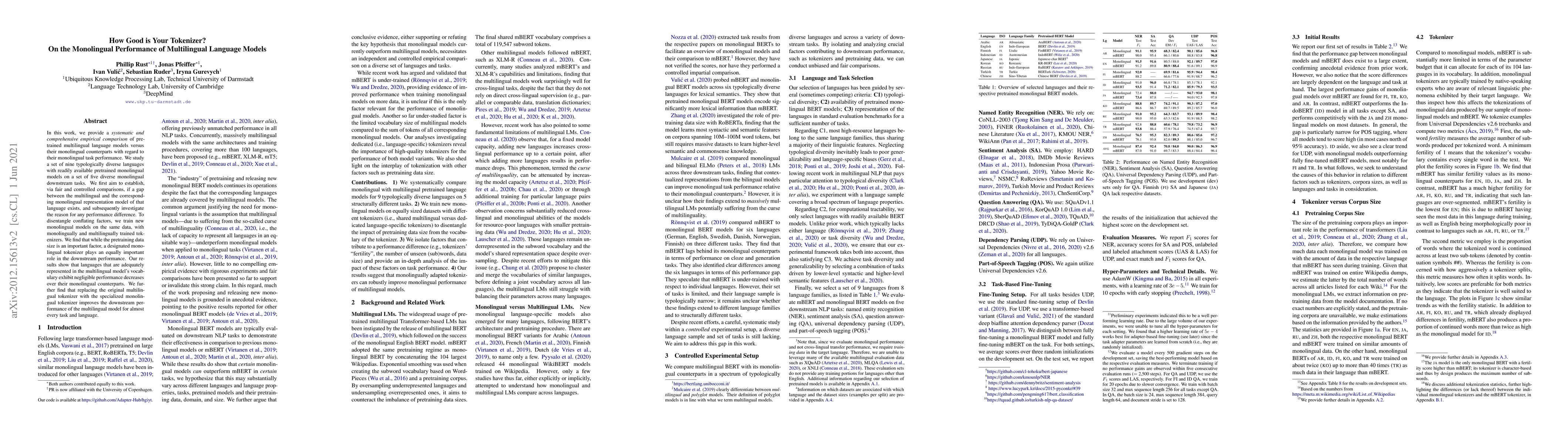 This paper compares the monolingual performance of pretrained multilingual language models to their monolingual counterparts across diverse languages and tasks. It finds that while pretraining data size matters, using a specialized monolingual tokenizer significantly enhances the multilingual model's downstream performance, especially for languages well-represented in the model's vocabulary.