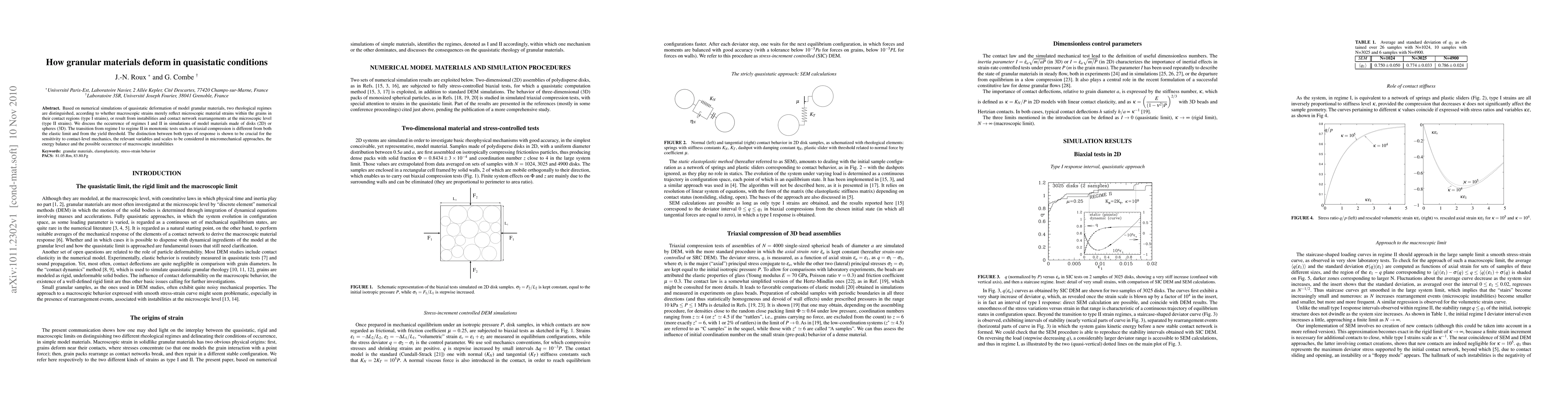 This paper identifies two rheological regimes in quasistatic deformation of granular materials: type I strains reflect microscopic grain strains, while type II strains arise from instabilities and network rearrangements. The transition between these regimes is distinct from elastic limits and yield thresholds, highlighting their importance for micromechanical analysis and macroscopic instability prediction.