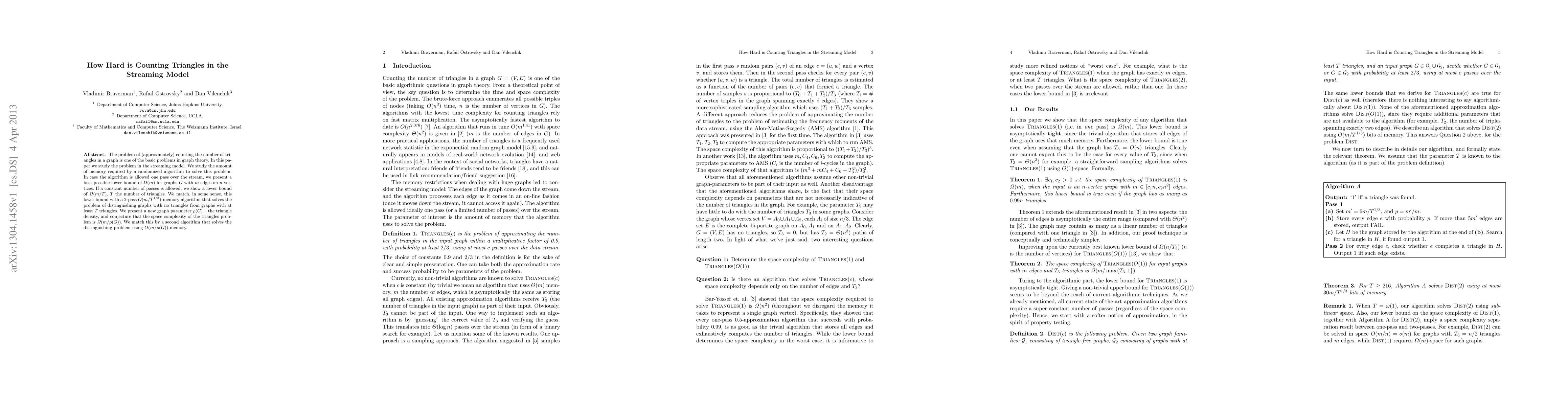 The research analyzes the problem of counting triangles in graphs in the streaming model, focusing on memory requirements for randomized algorithms. It establishes lower bounds for one-pass and multi-pass scenarios, and presents algorithms that match these bounds.