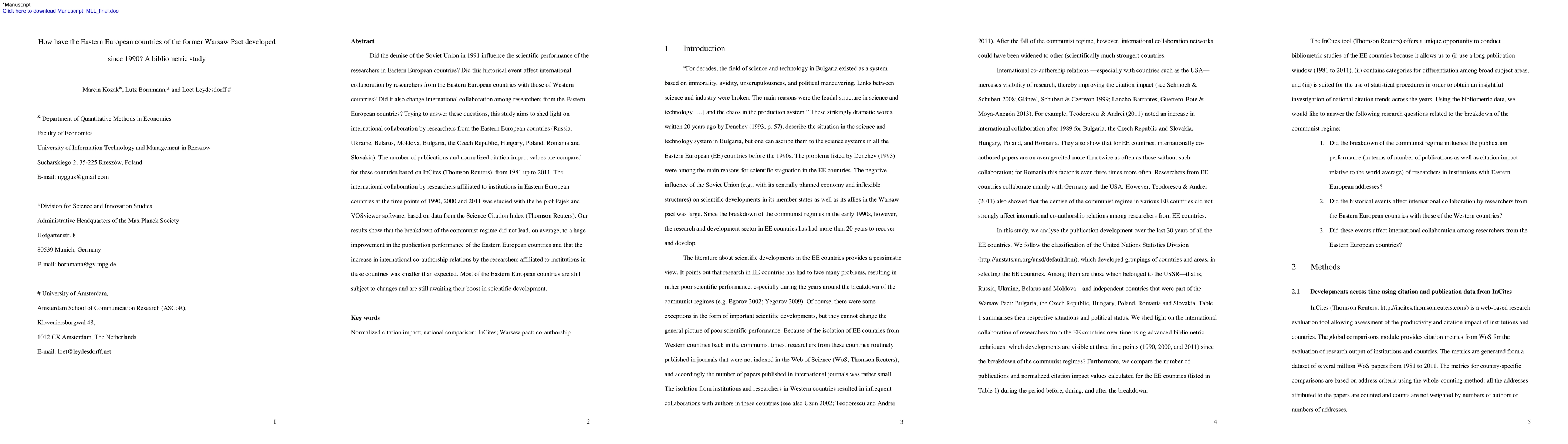 This study examines the scientific development of Eastern European countries post-1990, focusing on publication output and international collaboration. Findings indicate minimal improvement in publication performance and less-than-expected growth in international co-authorship since the fall of the Soviet Union.