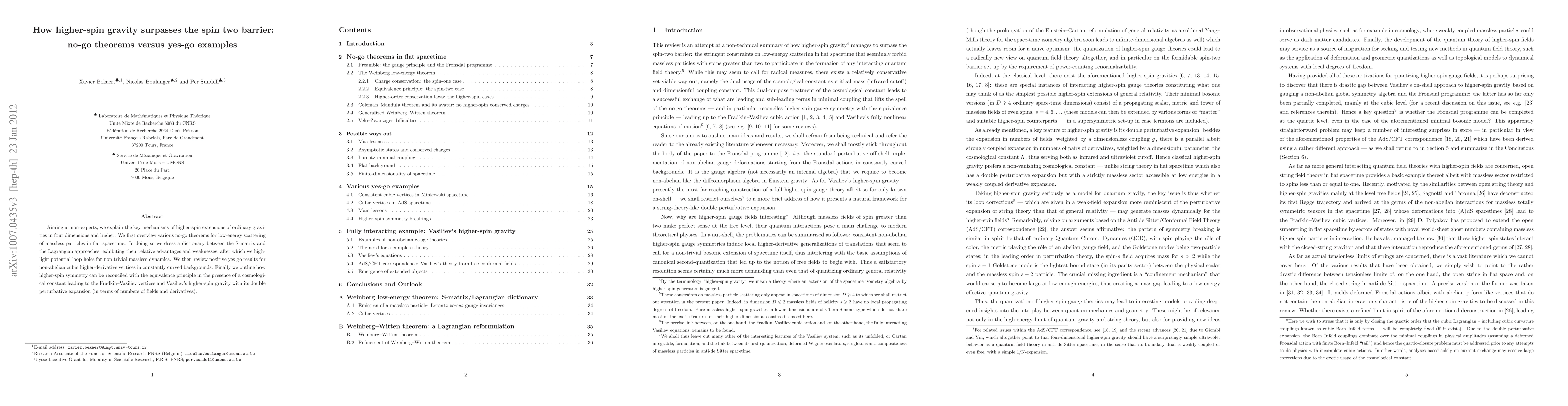 Aiming at non-experts, we explain the key mechanisms of higher-spin extensions of ordinary gravity. We first overview various no-go theorems for low-energy scattering of massless particles in flat spacetime. In doing so we dress a dictionary between the S-matrix and the Lagrangian approaches, exhibiting their relative advantages and weaknesses, after which we high-light potential loop-holes for non-trivial massless dynamics. We then review positive yes-go results for non-abelian cubic higher-derivative vertices in constantly curved backgrounds. Finally we outline how higher-spin symmetry can be reconciled with the equivalence principle in the presence of a cosmological constant leading to the Fradkin--Vasiliev vertices and Vasiliev's higher-spin gravity with its double perturbative expansion (in terms of numbers of fields and derivatives).