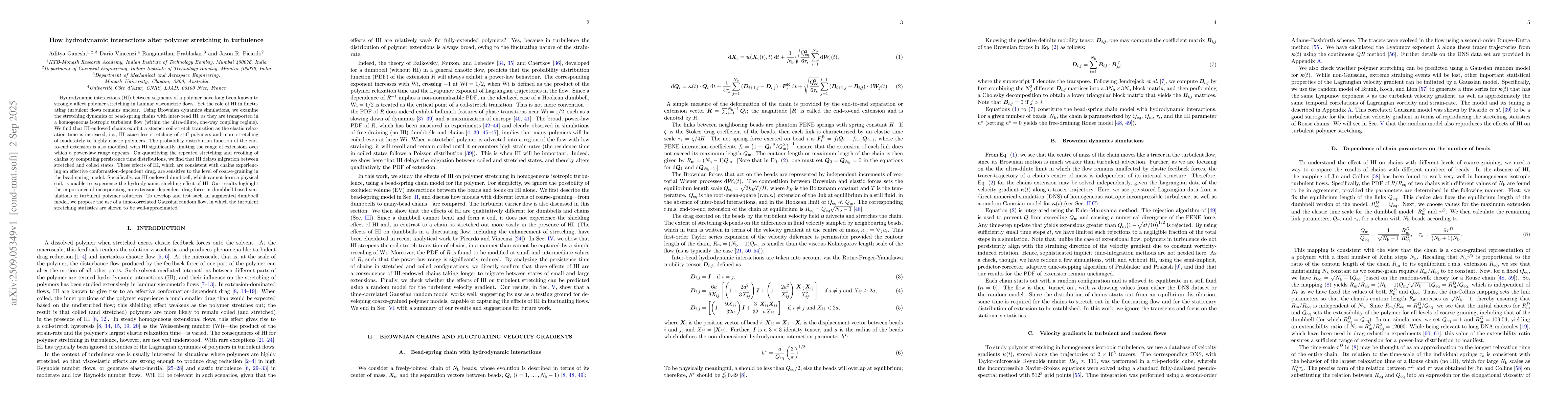 Hydrodynamic interactions (HI) between segments of a polymer have long been known to strongly affect polymer stretching in laminar viscometric flows. Yet the role of HI in fluctuating turbulent flows remains unclear. Using Brownian dynamics simulations, we examine the stretching dynamics of bead-spring chains with inter-bead HI, as they are transported in a homogeneous isotropic turbulent flow (within the ultra-dilute, one-way coupling regime). We find that HI-endowed chains exhibit a steeper coil-stretch transition as the elastic relaxation time is increased, i.e., HI cause less stretching of stiff polymers and more stretching of moderately to highly elastic polymers. The probability distribution function of the end-to-end extension is also modified, with HI significantly limiting the range of extensions over which a power-law range appears. On quantifying the repeated stretching and recoiling of chains by computing persistence time distributions, we find that HI delays migration between stretched and coiled states. These effects of HI, which are consistent with chains experiencing an effective conformation-dependent drag, are sensitive to the level of coarse-graining in the bead-spring model. Specifically, an HI-endowed dumbbell, which cannot form a physical coil, is unable to experience the hydrodynamic shielding effect of HI. Our results highlight the importance of incorporating an extension-dependent drag force in dumbbell-based simulations of turbulent polymer solutions. To develop and test such an augmented dumbbell model, we propose the use of a time-correlated Gaussian random flow, in which the turbulent stretching statistics are shown to be well-approximated.