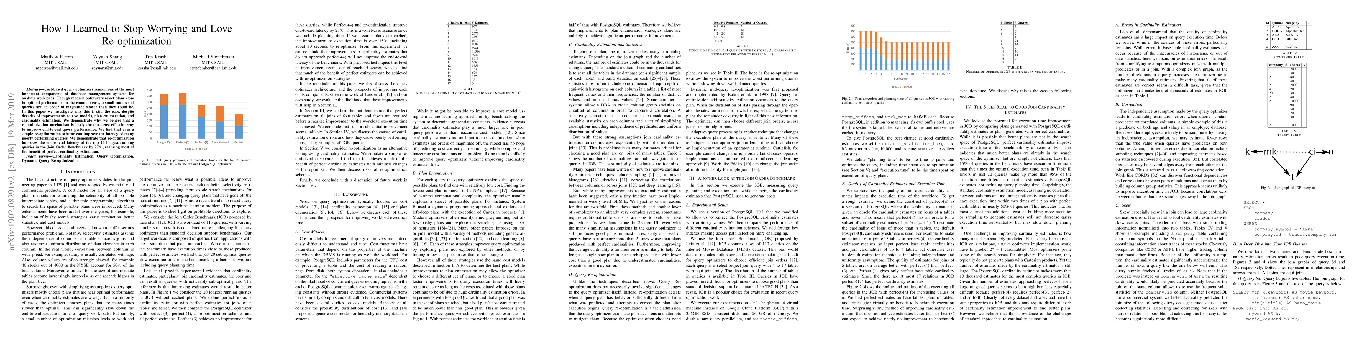 This paper explores the inefficiencies in cost-based query optimizers for analytic workloads and suggests that a re-optimization mechanism can significantly improve query performance, achieving a 27% reduction in latency for the top 20 longest-running queries.