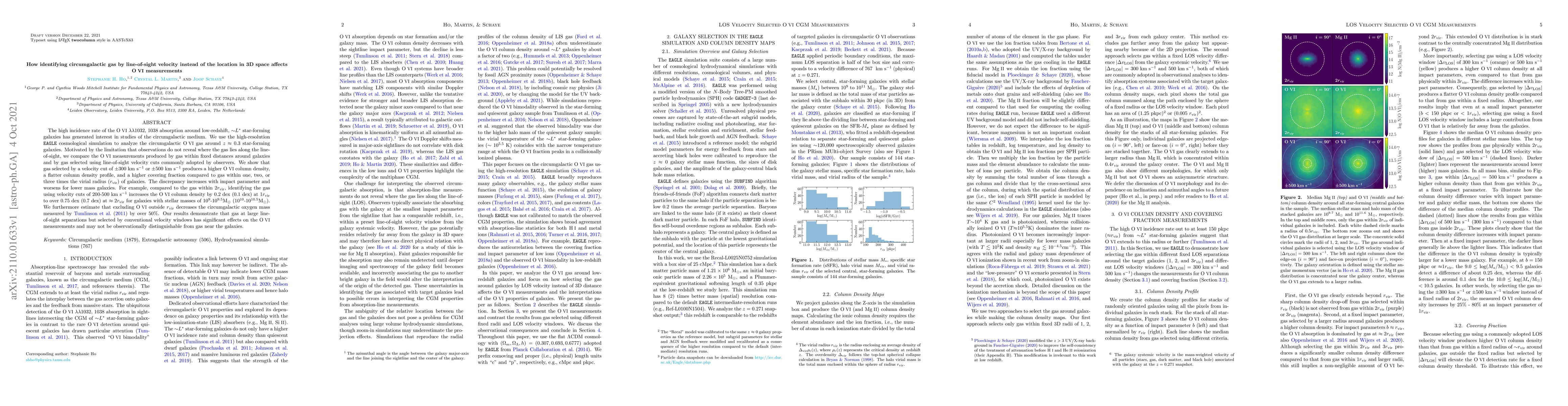 This study uses the EAGLE simulation to analyze O VI gas around low-redshift star-forming galaxies, finding that selecting gas by line-of-sight velocity cuts instead of spatial proximity results in higher O VI column densities and covering fractions. The discrepancy is more pronounced for lower mass galaxies and larger impact parameters.