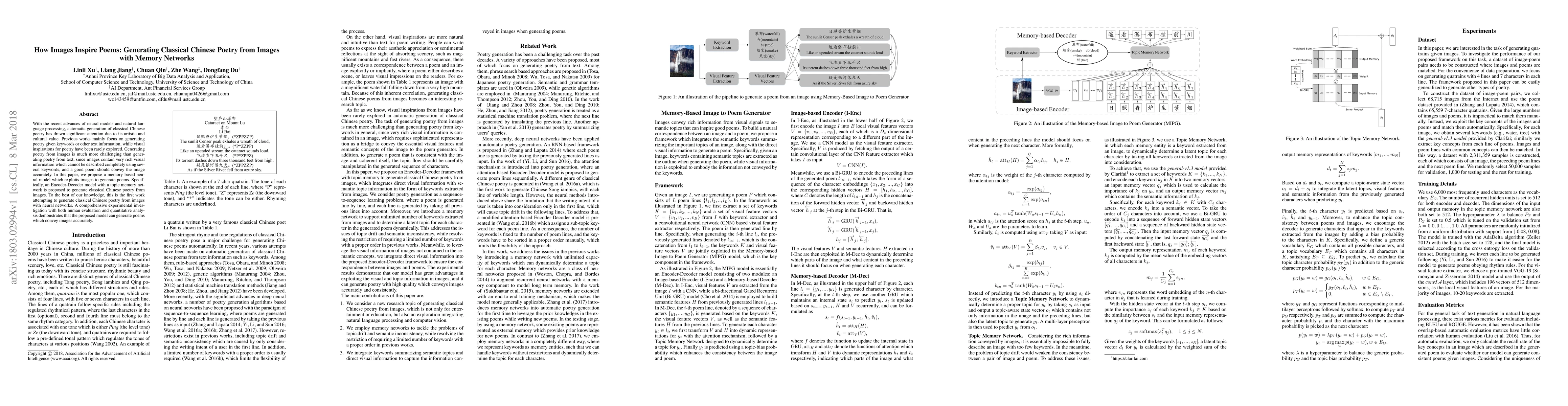 This paper introduces a memory-based neural model, specifically an Encoder-Decoder with a topic memory network, to generate classical Chinese poetry inspired by images. The approach aims to address the challenge of conveying rich visual information from images, demonstrating successful generation of poems that accurately represent the visual content through experiments.