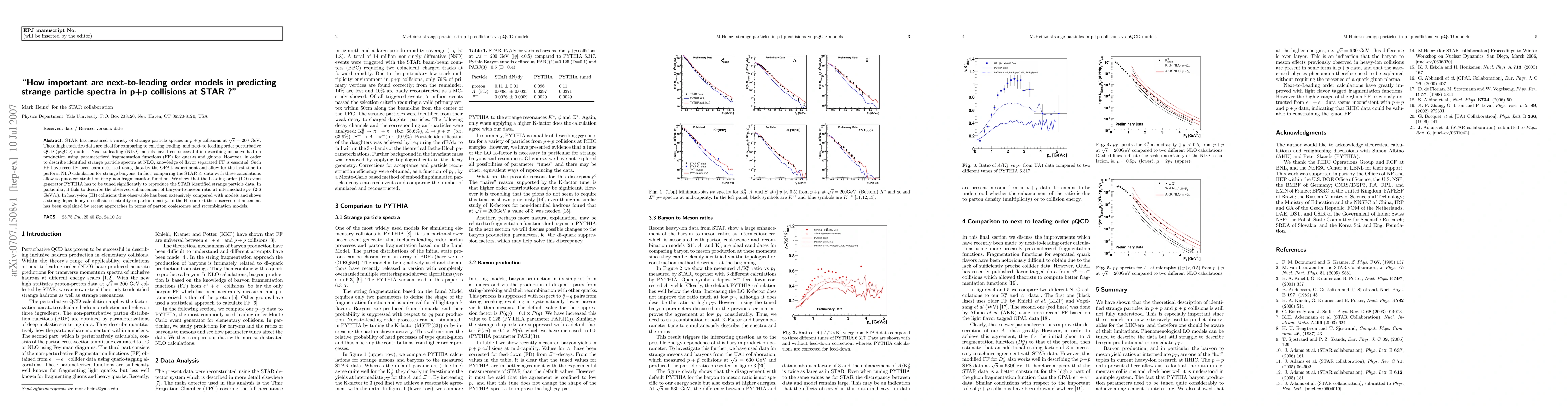 STAR has measured a variety of strange particle species in p + p collisions at $\sqrt{s}$ = 200 GeV. These high statistics data are ideal for comparing to existing leading- and next-to-leading order perturbative QCD (pQCD) models. Next-to-leading (NLO) models have been successful in describing inclusive hadron production using parameterized fragmentation functions (FF) for quarks and gluons. However, in order to describe identied strange particle spectra at NLO, knowledge of flavor separated FF is essential. Such FF have recently been parameterized using data by the OPAL experiment and allow for the first time to perform NLO calculation for strange baryons. In fact, comparing the STAR Lambda data with these calculations allow to put a constraint on the gluon fragmentation function. We show that the Leading-order (LO) event generator PYTHIA has to be tuned significantly to reproduce the STAR identified strange particle data. In particular, it fails to describe the observed enhancement of baryon-to-meson ratio at intermediate pT (2-6 GeV/c). In heavy-ion (HI) collisions this observable has been extensively compared with models and shows a strong dependency on collision centrality or parton density. In the HI context the observed enhancement has been explained by recent approaches in terms of parton coalescense and recombination models.