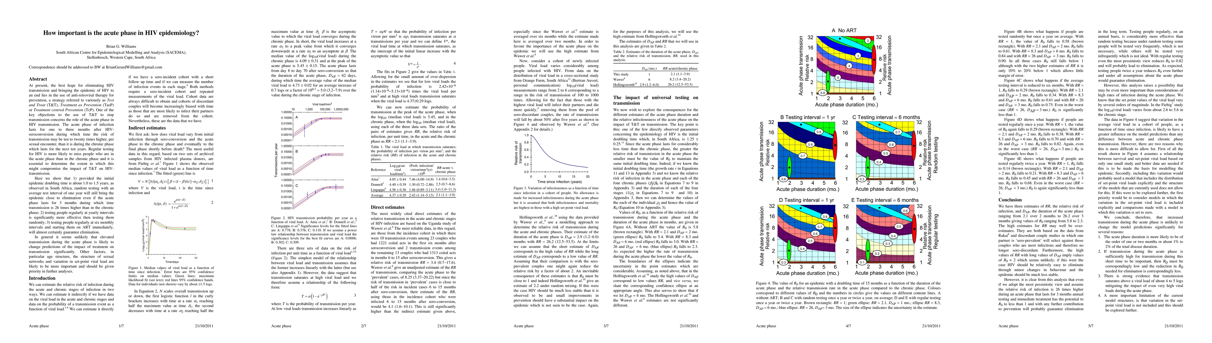 At present, the best hope for eliminating HIV transmission and bringing the epidemic of HIV to an end lies in the use of anti-retroviral therapy for prevention, a strategy referred to variously as Test and Treat (T&T), Treatment as Prevention (TasP) or Treatment centred Prevention (TcP). One of the key objections to the use of T&T to stop transmission concerns the role of the acute phase in HIV transmission. The acute phase of infection lasts for one to three months after HIV-seroconversion during which time the risk of transmission may be ten to twenty times higher, per sexual encounter, than it is during the chronic phase which lasts for the next ten years. Regular testing for HIV is more likely to miss people who are in the acute phase than in the chronic phase and it is essential to determine the extent to which this might compromise the impact of T&T on HIV-transmission. Here we show that 1) provided the initial epidemic doubling time is about 1.0 to 1.5 years, as observed in South Africa, random testing with an average test interval of one year will still bring the epidemic close to elimination even if the acute phase lasts for 3 months during which time transmission is 26 times higher than in the chronic phase; 2) testing people regularly at yearly intervals is significantly more effective then testing them randomly; 3) testing people regularly at six monthly intervals and starting them on ART immediately, will almost certainly guarantee elimination. In general it seems unlikely that elevated transmission during the acute phase is likely to change predictions of the impact of treatment on transmission significantly. Other factors, in particular age structure, the structure of sexual networks and variation in set-point viral load are likely to be more important and should be given priority in further analyses.