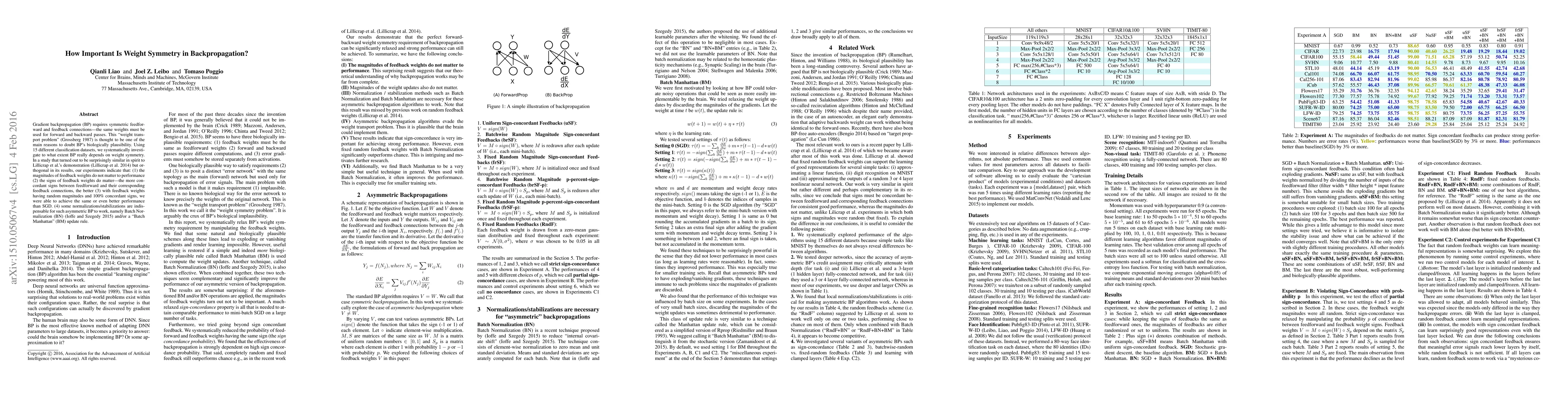 Gradient backpropagation (BP) requires symmetric feedforward and feedback connections -- the same weights must be used for forward and backward passes. This "weight transport problem" (Grossberg 1987) is thought to be one of the main reasons to doubt BP's biologically plausibility. Using 15 different classification datasets, we systematically investigate to what extent BP really depends on weight symmetry. In a study that turned out to be surprisingly similar in spirit to Lillicrap et al.'s demonstration (Lillicrap et al. 2014) but orthogonal in its results, our experiments indicate that: (1) the magnitudes of feedback weights do not matter to performance (2) the signs of feedback weights do matter -- the more concordant signs between feedforward and their corresponding feedback connections, the better (3) with feedback weights having random magnitudes and 100% concordant signs, we were able to achieve the same or even better performance than SGD. (4) some normalizations/stabilizations are indispensable for such asymmetric BP to work, namely Batch Normalization (BN) (Ioffe and Szegedy 2015) and/or a "Batch Manhattan" (BM) update rule.