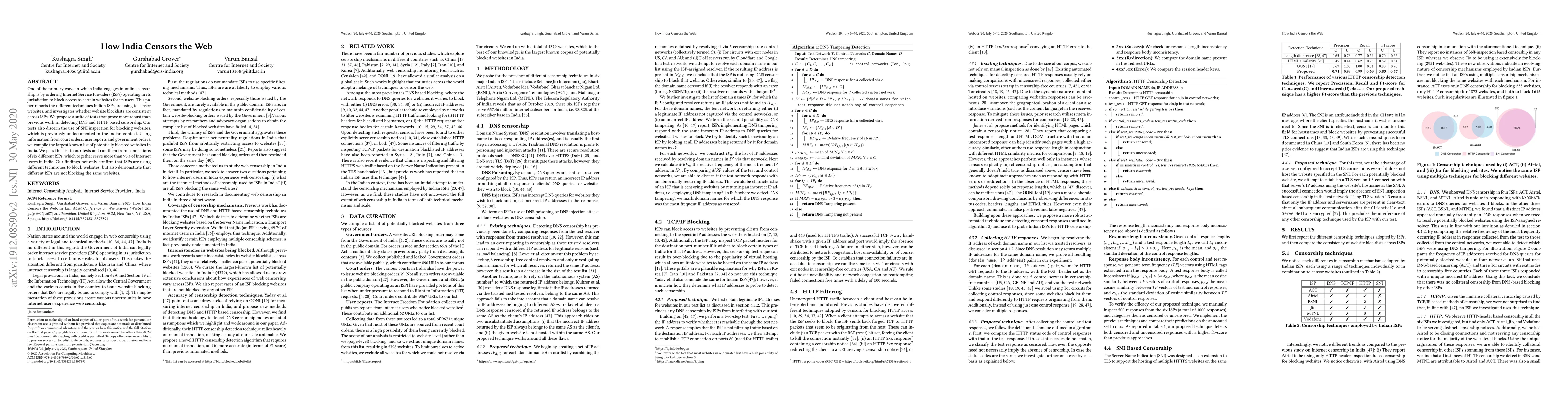 Indian Internet Service Providers block websites using diverse techniques, including DNS and HTTP censorship, with different ISPs blocking distinct sets of sites, according to a comprehensive study.